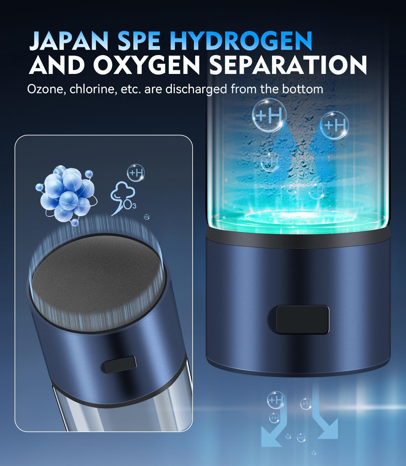 Trinkwasser der Zukunft! Diese Wasserstoffflasche macht normales Leitungswasser in 3 Minuten zu antioxidantreichem Hydrogenwasser. Mit SPE/PEM-Technologie - 4000 ppb Wasserstoff, null Chlor, null Ozon! \n\nAus lebensmittelechtem Borosilikatglas (ROHS-zertifiziert). Eine Tasse davon wirkt wie 5 Tassen normales Wasser! Unterstützt Stoffwechsel, reduziert Muskelkater, verbessert Schlaf. Super für unterwegs, ins Büro oder zum Sport. Einfach Wasser rein, Knopf drücken, fertig! Fühle dich energiegeladener und gesünder - probier's aus!
