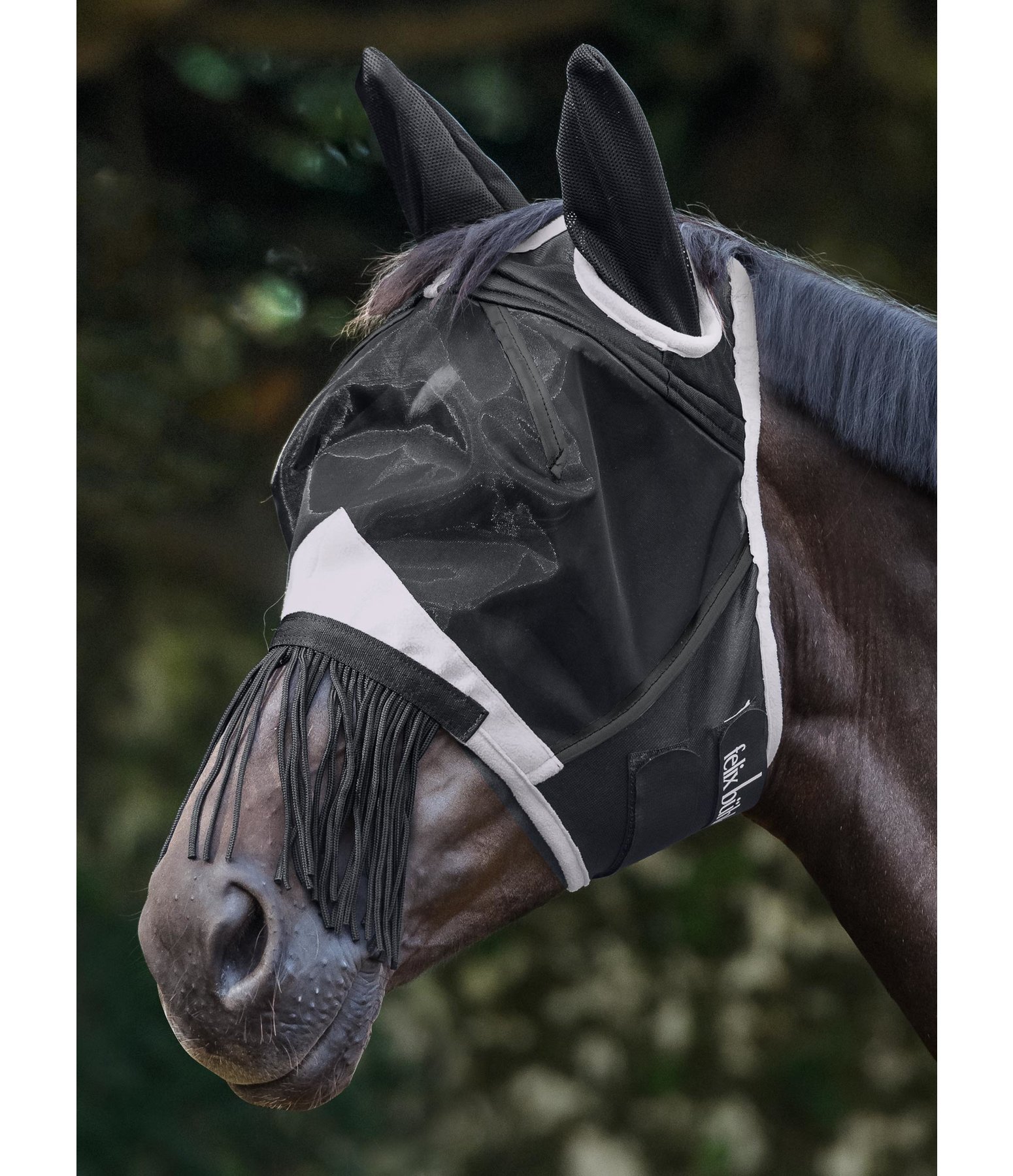 Schluss mit lästigen Insekten! Diese praktische Fliegenmaske von PFIFF sorgt dafür, dass dein Pferd entspannt bleiben kann - ob beim Reiten, Longieren oder bei der Arbeit am Boden.\n\nDie robuste, engmaschige Gesichtsmaske schützt besonders die empfindlichen Bereiche wie Augen und Ohren vor Fliegen, Mücken und anderen Plagegeistern. Gleichzeitig ist sie so schmal geschnitten, dass sie nicht unter dem Zaumzeug scheuert oder drückt.\n\nPraktische Features:\n- Größe: Cob (für die meisten Pferde ideal)\n- Farbe: Schwarz\n- Mit Schopfdurchlass für perfekten Sitz\n- Größenverstellbare Klettverschlüsse\n- Schnelles An- und Ablegen\n- Waschbar bei 30°C\n\nDas Material aus 100% Polyester ist nicht nur langlebig, sondern auch angenehm für dein Pferd. Die Maske lässt sich mit wenigen Handgriffen an der Zäumung befestigen und sitzt sicher ohne zu verrutschen.\n\nPerfekt für:\n- Ausritte in der Fliegensaison\n- Training auf dem Reitplatz\n- Longieren und Bodenarbeit\n- Stallarbeit und Pflege\n- Transport im Pferdeanhänger\n\nDein Pferd wird es dir danken! Mit dieser Fliegenmaske können sich beide - Pferd und Reiter - voll auf das Wesentliche konzentrieren, ohne von Insekten abgelenkt zu werden. Ein Muss für jeden Pferdebesitzer in der warmen Jahreszeit!