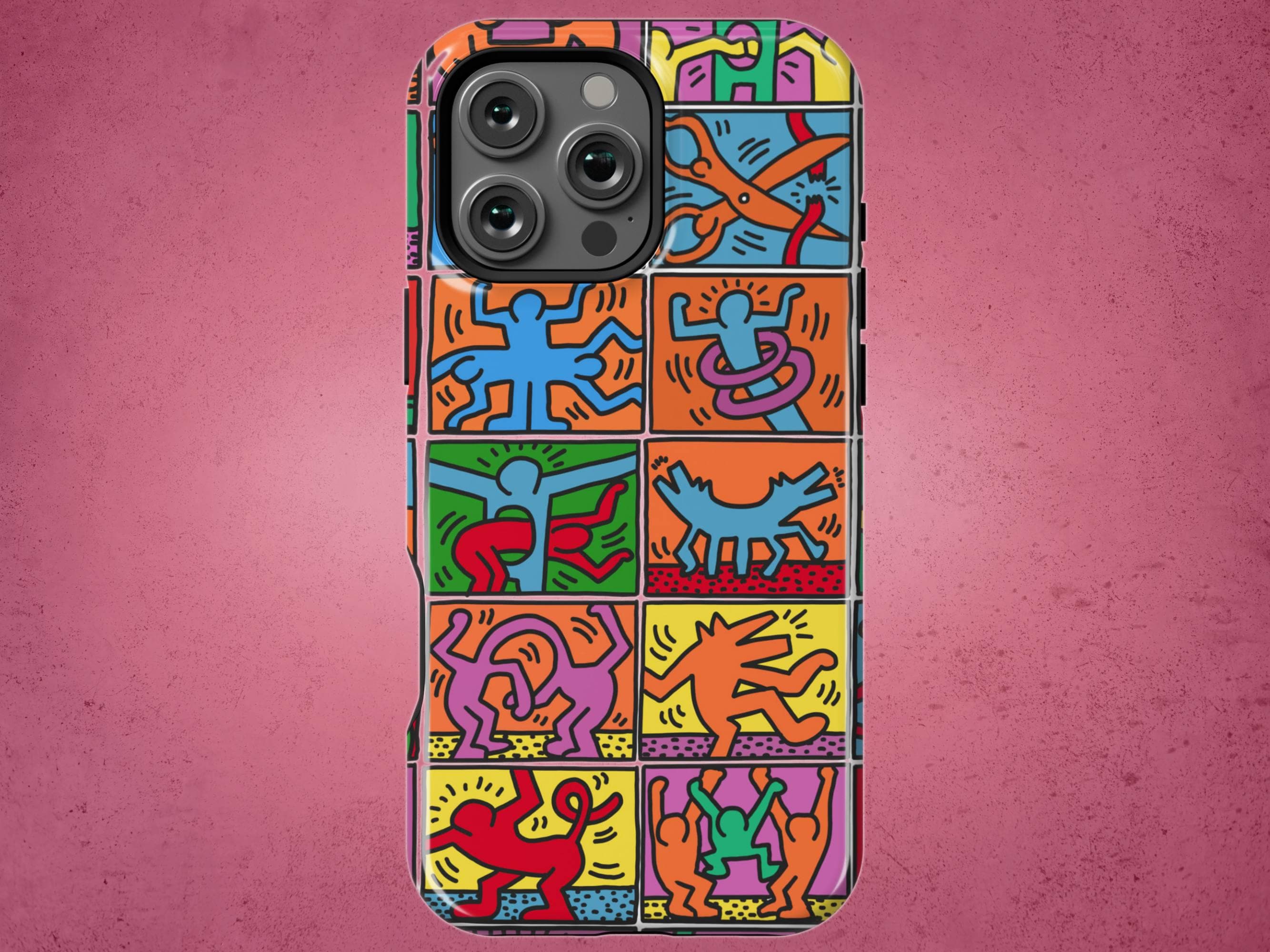 Total kultig - diese Keith Haring PHONEBAG! Sie ist nicht nur eine coole Handyhülle mit dem ikonischen Keith Haring Design, sondern auch noch eine praktische Tasche für deine Karten und Kleingeld. Das Magnet-System hält dein Smartphone (bis 6,7 Zoll) sicher fest - einfach das Metallplättchen anbringen und schon sitzt alles bombenfest. Mit den praktischen Steckfächern hast du immer alle wichtigen Karten dabei, ohne eine extra Geldbörse mitschleppen zu müssen. Die Handschlaufe und der abnehmbare Schultergurt geben dir verschiedene Trageoptionen. So kannst du sie je nach Outfit und Stil anpassen. Praktisch, sicher und mega stylish - mehr braucht man nicht für unterwegs!