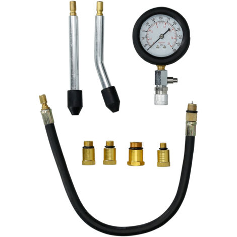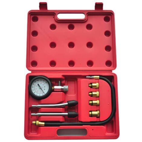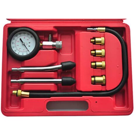 Profiverkzeug für jede Werkstatt! Dieser Kompressionstester misst präzise von 0-20 bar bzw. 0-300 PSI und zeigt dir sofort den Zustand deines Motors an. Mit dabei: 4 verschiedene Adapter (M10, M12, M14, M18) für fast alle gängigen Fahrzeuge - ob Auto, LKW oder Motorrad. Das Manometer mit doppelter Skala ist super ablesbar, der Kupferschlauch ist 43cm lang und gibt dir genug Spielraum. Besonders praktisch: Das empfindliche Auslassventil und das selbstsichernde Gelenk für genaue Messergebnisse. So checkst du schnell und einfach Ventile, Kolbenringe oder Zylinderbohrungen. Kommt im praktischen Kunststoffkoffer - alles sicher verstaut und immer griffbereit. Ein Muss für jede Fahrzeugdiagnose!