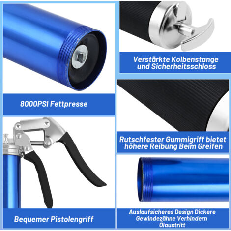 • IFCOW Fettpresse 7000 PSI - Pistolengriff Mit 4 Flexschläuchen