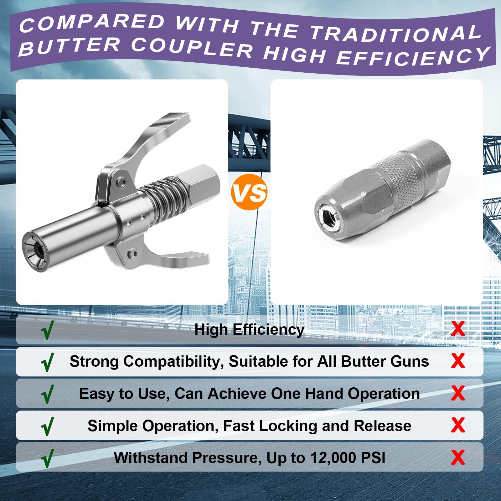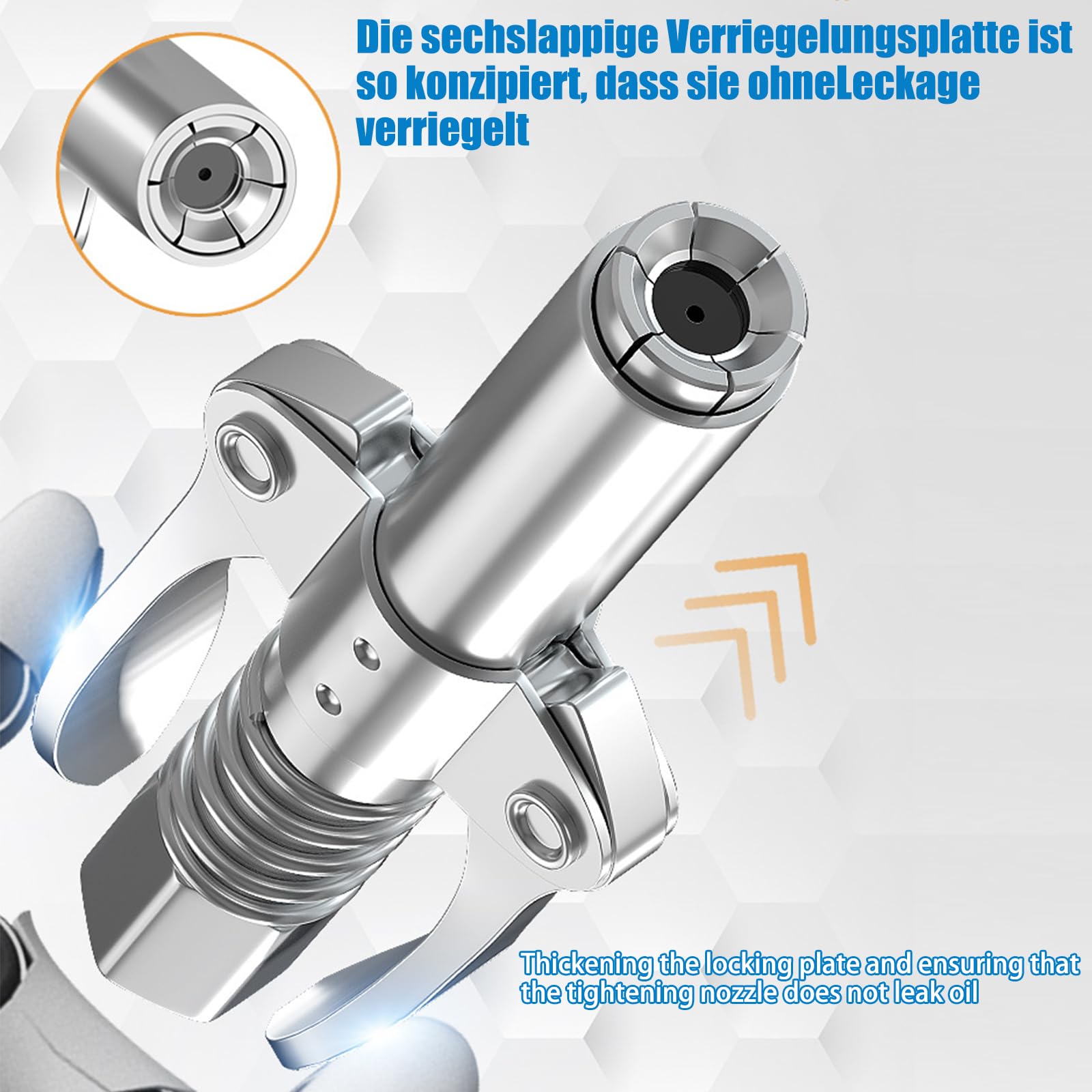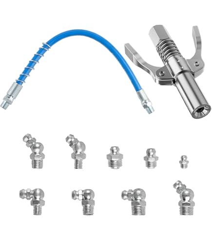 Du hast keine Lust mehr, beim Schmieren zu kämpfen? Dieser G-Koppler für deine Fettpresse macht endlich Schluss mit fummeligen Schmierarbeiten! Der Klemmmechanismus mit 6 Backen packt richtig zu und hält auch bei vollem Druck von 10.000 PSI bombenfest. Besonders praktisch: Er passt auf alle gängigen Schmiernippel von M6 bis M14 - ob an deinem Auto, Traktor oder Baumaschinen. Der Doppelgriff liegt super in der Hand und selbst mit öligen Fingern rutscht er nicht weg. Mit dem 30 cm langen Schlauch kommst du auch an die blöden, schwer erreichbaren Stellen ran. Einfach draufdrücken, verriegeln - und schon fließt das Fett genau dahin, wo's hin soll. Kein Lästiges Abrutschen mehr, kein Fett verschießen! Das Teil ist aus robustem Metall und hält ewig. Egal ob du ne manuelle, pneumatische oder elektrische Fettpresse hast - dieser Koppler ist dein neuer bester Freund in der Werkstatt!