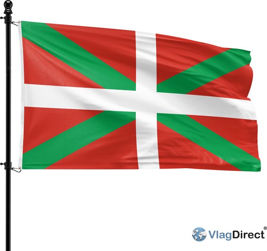 Zeige deine Verbundenheit mit dem Baskenland! Diese hochwertige Flagge im Format 90x152cm ist aus robustem 100D Polyester gefertigt. Die lebendigen Farben leuchten beidseitig - rot, weiß, grün mit dem baskischen Kreuz. Doppelt genähte Säume und Messingösen sorgen für lange Haltbarkeit auch bei Wind und Wetter. Perfekt für den Garten, Balkon, bei Sportveranstaltungen oder kulturellen Events. Leicht und praktisch - schnell aufgehängt und ebenso schnell wieder verstaut. Super für Feste, Paraden oder als Dekoration im Zimmer. Die Flagge verblasst nicht in der Sonne und franst nicht aus. Ein Muss für alle Baskenland-Fans! Wird ohne Stock geliefert - also such dir einfach einen passenden Fahnenmast aus. Hübsch, langlebig und ausdrucksstark!