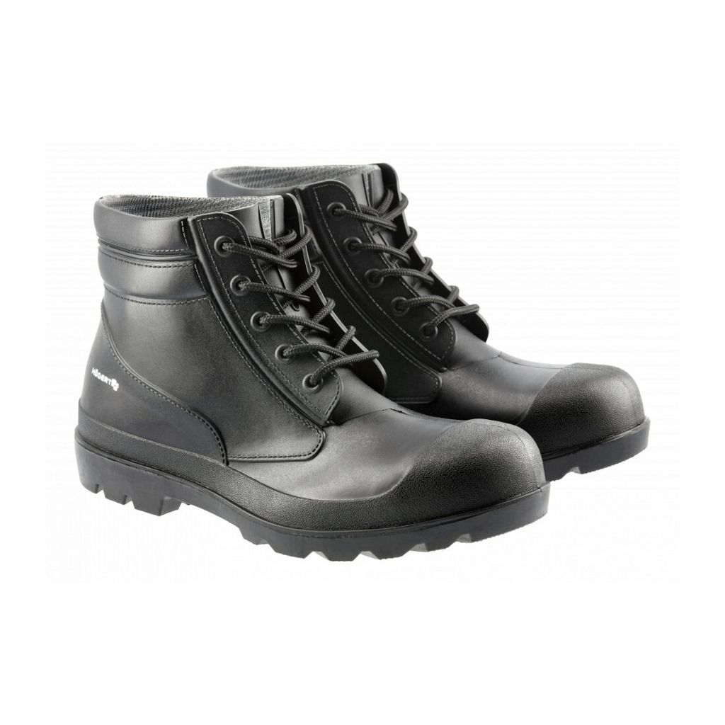 Sicherheit und Komfort für harte Jobs! Diese Högert Technik Arbeitsstiefel sind einfach praktisch. Aus hochwertigem PVC mit Polyester-Innenfutter - robust und langlebig. Mit SRA-rutschfester Sohle - sicher auf nassen, öligen Böden. Ohne Metallteile, Zehenschutz und Durchtrittschutz - besonders leicht und bequem. Wasserdicht - perfekt für nasse Arbeitsumgebungen. Ideal für Bau, Handwerk, Industrie oder Landwirtschaft. Atmungsaktiv, auch bei langen Tragezeiten angenehm. Ein zuverlässiger Begleiter für jeden Arbeitstag. Einfach reinspringen und losarbeiten - trockene Füße garantiert!