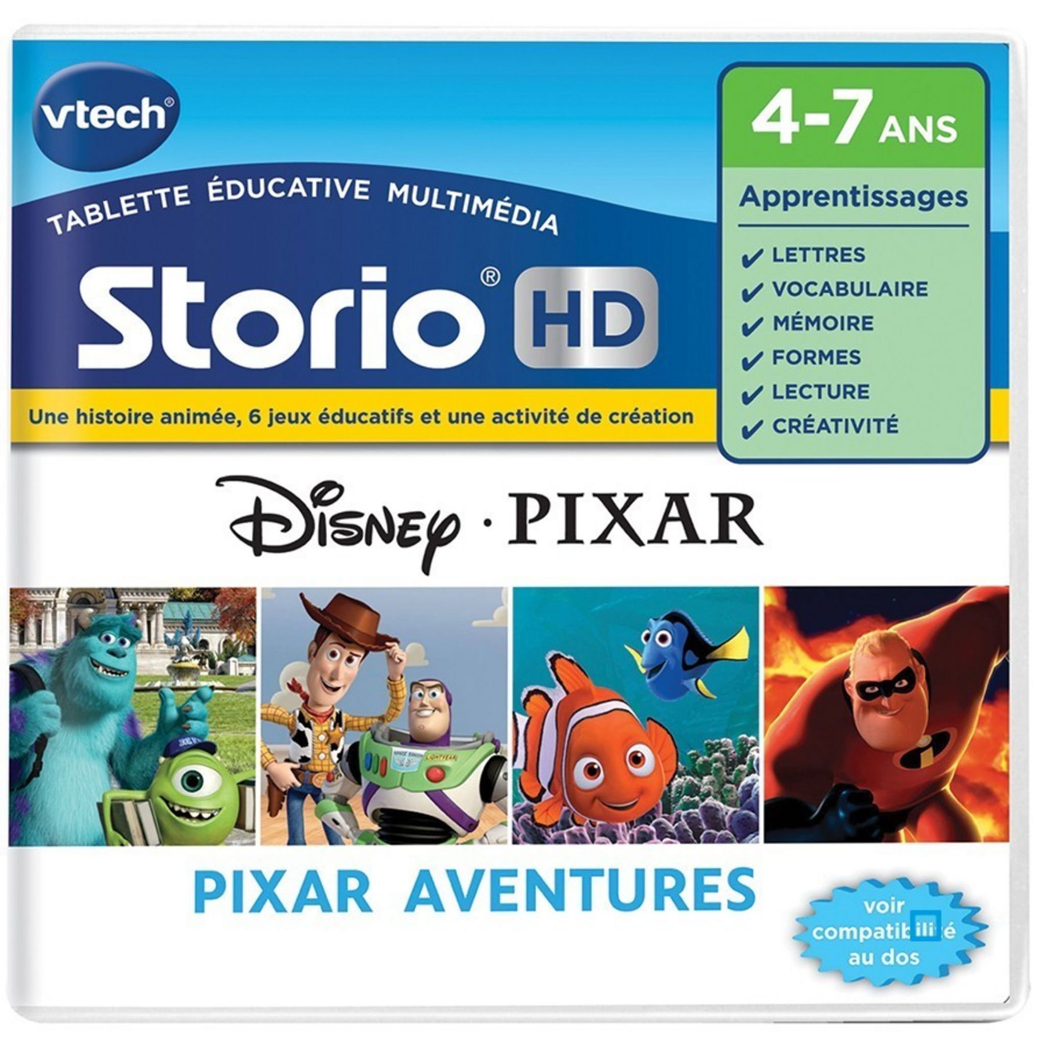 Oh, wie aufregend für die Kleinen! Dieses Vtech Storio Lernspiel mit den beliebten PYJAMASques (PJ Masks) bringt Spielspaß und Lernen zusammen. Perfekt für Kinder von 4 bis 7 Jahren.\n\nEnthalten ist eine große animierte Geschichte, ein spannendes Abenteuer und 6 verschiedene Lernspiele. Begleitet von den Helden der PJ Masks macht das Lernen gleich doppelt so viel Spaß!\n\nKompatibel mit allen Storio Tablets, inklusive Storio Max und Storio Max Baby. Einfach die Kartusche einstecken und los geht das Abenteuer. Die Kinder tauchen ein in die Welt ihrer Lieblingshelden.\n\nFördert spielerisch verschiedene Fähigkeiten: Logisches Denken, Farben, Formen und vieles mehr. Ideal für Vorschulkinder und Erstklässler. Macht nicht nur Spaß, sondern ist auch pädagogisch wertvoll.\n\nDie Box kann sowohl aufgestellt als auch aufgehängt werden - praktisch fürs Kinderzimmer. Ein tolles Geschenk für kleine PJ Masks-Fans. Dein Kind wird begeistert sein von diesem interaktiven Spielerlebnis!