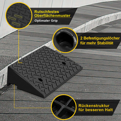 Endlich stressfrei über Bordsteine und Stufen! Diese PYLE Auffahrrampen aus Gummi sind super stabil - jede hält bis zu 5 Tonnen! Maße 61x41x7cm, perfekt für PKW, Motorräder, Anhänger und sogar Rollstühle. Rutschfeste Oberfläche, wetterfest und mit gelben Reflektoren für bessere Sichtbarkeit. Einfach vor die Stufe legen und rüberfahren - deine Stoßstange und Reifen bleiben geschont. Modular erweiterbar, kann auch dauerhaft montiert werden. Perfekt für Einfahrten, Garagen, Werkstätten oder gewerbliche Nutzung. Nie wieder Ärger mit hohen Bordsteinen! Einfach praktisch und robust - diese Rampe löst deine Auffahrprobleme für immer.