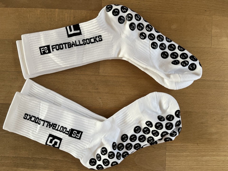 Volle Kontrolle für deine Füße! Diese 2 Paar weißen Fußballsocken geben dir den perfekten Halt auf dem Platz. Mit cleveren Noppen an der Sohle verhinderst du lästiges Rutschen - egal ob beim schnellen Richtungswechsel oder beim Sprint. Die Größe 38-46 passt sowohl Jungs und Mädels als auch Erwachsene. Das Material ist hochwertig, elastisch und super atmungsaktiv - deine Füße bleiben auch bei intensivem Training trocken und comfortable. Nicht nur für Fußball super, sondern auch für Basketball, Laufen oder Fitness. Das schlichte Design sieht sportlich aus und passt zu jedem Outfit. Perfekt für Training, Wettkampf oder einfach nur für den Alltag! Weich, dehnbar und langlebig - genau das, was echte Sportler brauchen. Einfach anziehen und loslegen!