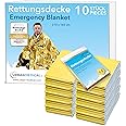 Wenn's draußen ungemütlich wird, sind diese Rettungsdecken dein bester Freund! Doppelseitig gold/silber - die reflektieren die Körperwärme und halten dich warm wenn's nass und kalt ist. Jede Decke wiegt kaum was - nur 55 Gramm! Passt in jeden Rucksack, ins Auto oder in den Erste-Hilfe-Koffer. Super nicht nur für Wanderungen und Camping, sondern auch fürs Stadion im Winter oder als Reserve im Auto. Die Decken sind wasser- und winddicht - wenn also plötzlich ein Schauer kommt, bleibst du trocken. Mit 160x210 cm groß genug für die meisten Menschen. Das 10er-Pack ist ideal für Gruppen, Vereine oder wenn du mehrere Autos ausstatten willst. Wirklich praktisch diese Dinger - habe ich immer im Ski-Rucksack und im Auto. Auch wenn man sie hoffentlich nie braucht: Besser haben als suchen! Einfach in der Originalverpackung lassen, dann nehmen sie kaum Platz weg. Material: Spezielle Kunststofffolie, wiederverschließbare Verpackung.