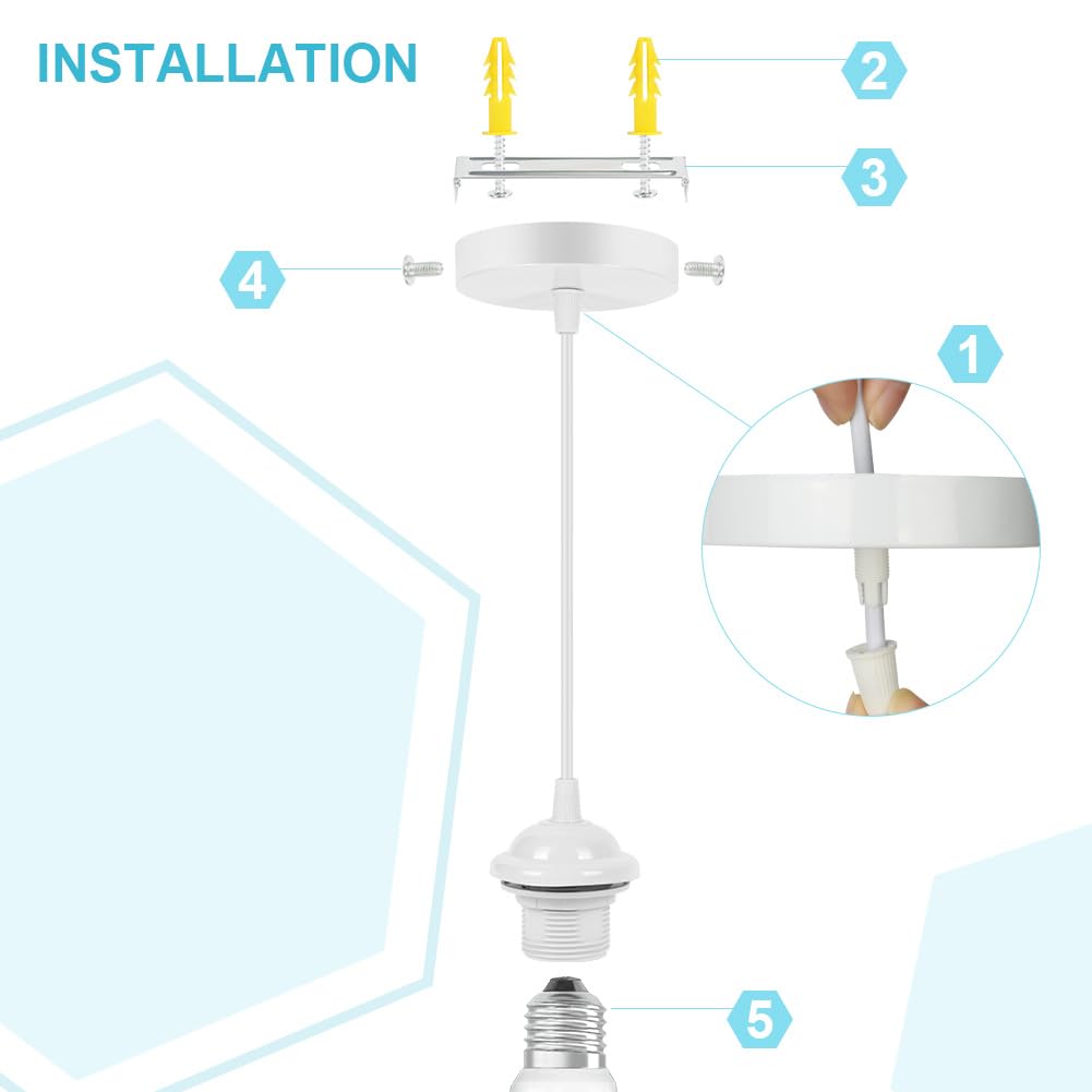 JcvPot E27 Lampenaufhängung 2er Pack - Weiße Pendelleuchte Mit 1m Kabel