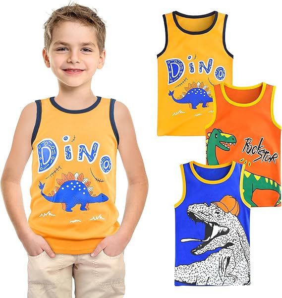 Suchst du praktische Sommertops für deinen kleinen Abenteurer? Dieses 3er Pack ärmelloser Shirts ist perfekt für heiße Tage! Mit coolen Dino-Motiven - was Jungen ja bekanntlich lieben. Aus weicher, atmungsaktiver Baumwolle, damit dein Kind nicht schwitzt und sich trotzdem super bewegen kann. Perfekt zum Schichten unter Hemden oder Jacken, oder einfach solo im Sommer. Die Tanktops sind maschinenwaschbar - praktisch für den Alltag mit Kindern. Wichtig: Vor der Bestellung unbedingt die Größentabelle checken! Von 2 bis 8 Jahren ist was dabei. Ob für den Kindergarten, Spielplatz oder Urlaub - diese Shirts gehen immer. Und mit drei Stück im Pack hast du immer Ersatz parat, wenn mal eins in der Wäsche ist. Einfach, bequem und mit Motiven, die Jungs richtig cool finden!