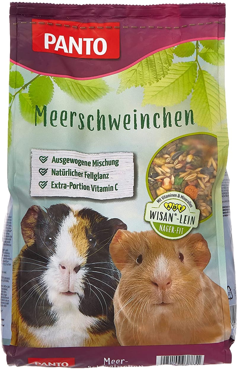 Das PANTO Meerschweinchenfutter ist die perfekte Ernährung für deine kleinen Lieblinge! In der praktischen 5er Packung mit je 1kg hast du lange was von dem hochwertigen Futter. Mit der speziellen Wisan-Lein Rezeptur förderst du die Verdauung und sorgst für glänzendes Fell. Die bunte Mischung aus Getreide, Pellets, Möhrenstücken und Johannisbrot schmeckt den Meerschweinchen richtig gut. Ohne künstliche Farbstoffe - nur das Beste für deine Tiere! Die Aroma-Fresh-Packung ist wiederverschließbar und hält das Futter lange frisch. Mit wichtigen Vitaminen, Mineralstoffen und Omega-3-Fettsäuren für vitale und lebensfrohe Meerschweinchen. Über 30 Jahre Erfahrung aus Hamburg - Made in Germany Qualität. Einfach zweimal täglich frisch vorlegen und dazu immer frisches Heu und Wasser anbieten. Deine Meerschweinchen werden die Leckereien lieben - aber keine Sorge, wenn sie zuerst die besten Stückchen picken, das ist ganz normal! Analytische Bestandteile: 11,50% Rohprotein, 3,50% Rohöle/-fette, 8,50% Rohfaser. Für gesunde und glückliche Meerschweinchen - mit PANTO machst du alles richtig!