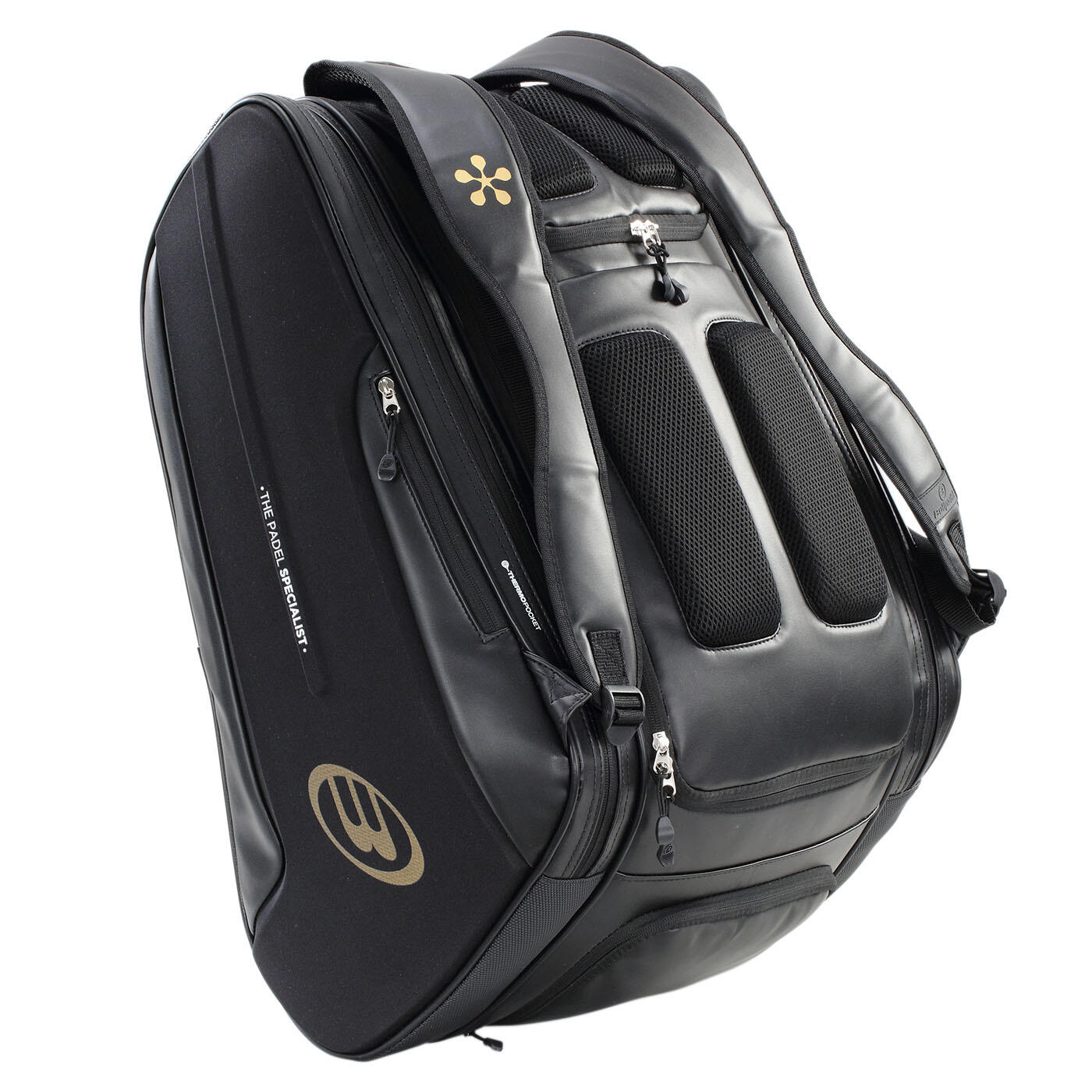 Padel-Profi gesucht? Diese Bullpadel Hack Tasche ist genau das Richtige für dich! Entwickelt in Zusammenarbeit mit Paquito Navarro, bietet sie alles, was ein anspruchsvoller Spieler braucht. Das große Hauptfach bietet reichlich Platz für Kleidung und Zubehör. Besonderes Highlight: Zwei Thermofächer für bis zu vier Schläger - schützt deine Paddels vor Temperaturschwankungen. Ein separates belüftetes Fach ist perfekt für schmutzige Wäsche oder Schuhe nach dem Spiel. Die semi-steife Konstruktion an den Seiten gibt zusätzlichen Schutz für deine Schläger. Der Rücken mit Schaumstoffpolsterung sorgt für angenehmen Tragekomfort, auch auf längeren Wegen. Verstellbare Träger für optimale Passform. Modernes Design, das zu deinem Bullpadel Hack 04 Schläger passt. Alles bestens organisiert und geschützt für dein nächstes Match. Qualität, auf die du zählen kannst!