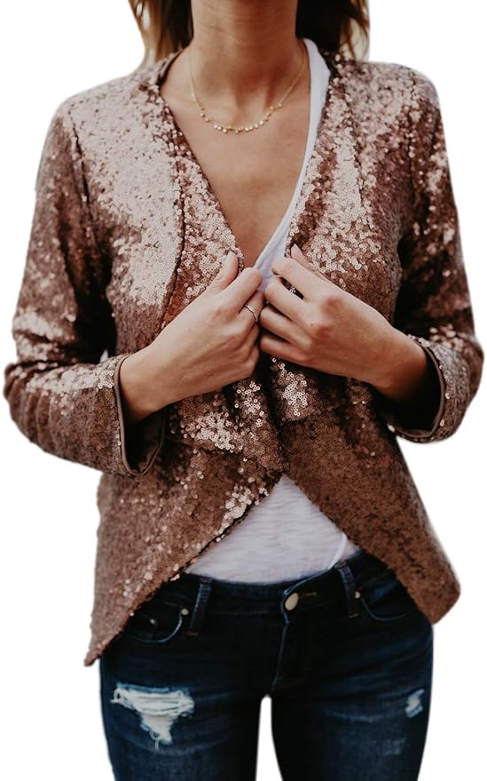 • Ulafbwur Damen Cape Jacke - Pailletten Cardigan Mit Offener Naht