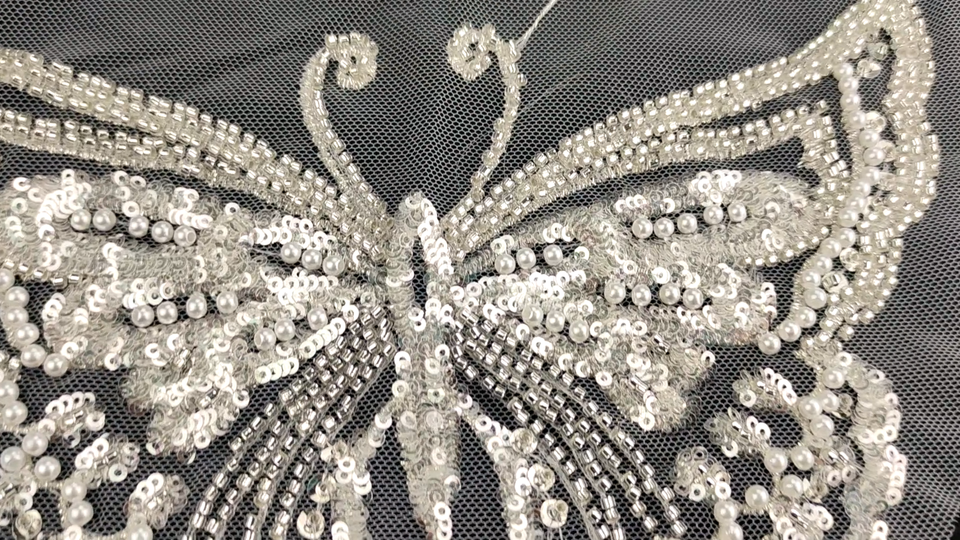 Oh, diese Pailletten-Applikationen sind ja mal richtig hübsch! 2 Paar kriegst du - das reicht für mehrere Projekte. Die floralen Schmetterlings-Motive glitzern richtig schön in der Sonne oder bei Licht. Perfekt, um aus einem einfachen Kleid was ganz Besonderes zu machen.
