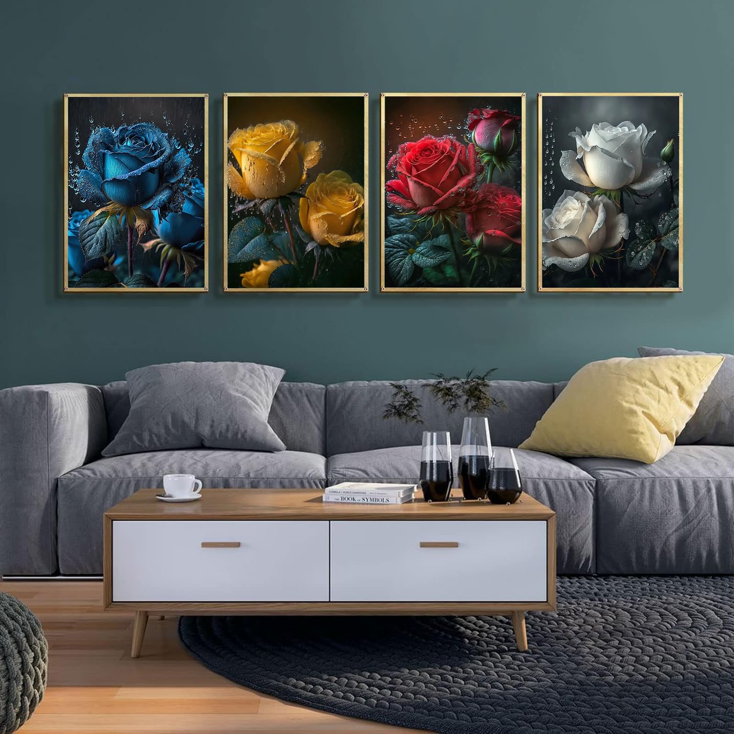 Das Komplett-Set enthält alles, was du brauchst: Diamantperlen, eine wasserfeste Leinwand, Kleber, einen Klebestift und eine praktische Schale. Die Leinwand hat einen HD-Druck, die Symbole sind super klar und leicht zu verstehen. Die runden 5D-Diamanten mit ihren 26 Facetten glitzern wie verrückt und verblassen nicht.