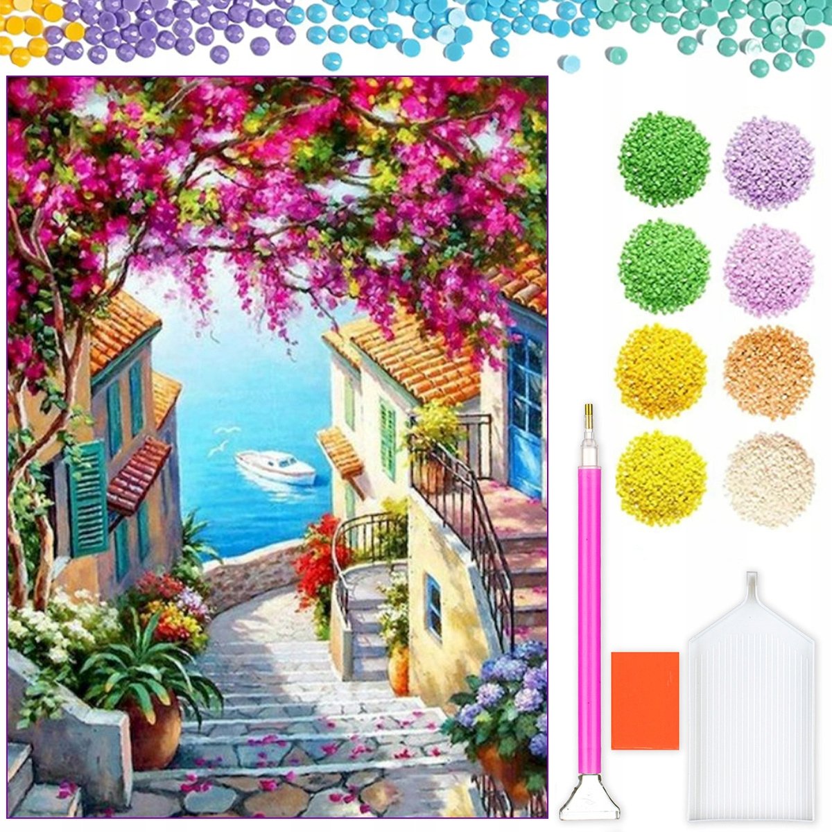 Wow, dieses Diamond Painting ist ja mal richtig entspannend! Stell dir vor: Du setzt winzige funkelnde Diamanten auf eine Leinwand und erschaffst nach und nach ein wunderschönes Landschaftsbild! Das Format 30x40 cm ist perfekt - nicht zu klein, nicht zu groß!\\n\\nDas Set ist komplett mit allem, was du brauchst: Leinwand mit Klebepad, 5D-Diamanten in allen benötigten Farben, Stift, Wachs und Sortierschalen! Selbst als Anfänger schaffst du das easy!\\n\\nDie Diamanten sind aus hochwertigem Resin und funkeln mega schön! Das Motiv hat tolle 5D-Effekte und sieht super realistisch aus! UV-beständig sind die Farben auch - dein Kunstwerk bleibt also ewig schön!\\n\\nPerfekt zum Abschalten nach einem stressigen Tag! Einfach Diamant für Diamant setzen, entspannen und zusehen, wie dein Meisterwerk entsteht! Das fertige Bild ist eine super Wanddekoration für Wohnzimmer, Flur oder Home-Office!\\n\\nAuch ein tolles Geschenk für Geburtstage oder Weihnachten! Wenn du kreativ sein willst und dabei runterkommen möchtest, ist Diamond Painting genau das Richtige für dich!