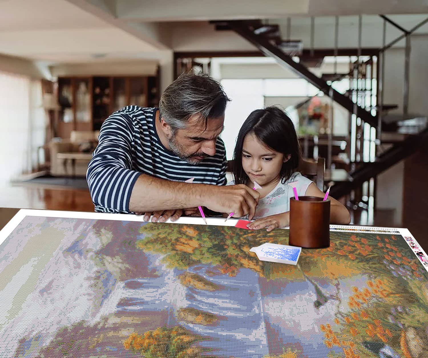 Mensch, dieses Diamant Painting ist ja riesig! Mit 80x40 cm wird der Wasserfall-Landschaft ein richtig toller Hingucker an deiner Wand. Die 5D-Diamanten mit 26 Facetten glitzern mega stark und reflektieren das Licht in allen Regenbogenfarben. Macht total Spaß und ist super entspannend - wie Meditation nur mit Glitzereffekt! Perfekt für abends vor dem Fernseher oder für gemütliche Bastelabende mit Freunden. Das Set ist komplett mit Leinwand, Diamanten in allen Farben, Klebestift und Schale. Und keine Sorge: Es sind 30% extra Diamanten dabei, falls mal einer verloren geht. Die Leinwand ist umweltfreundlich, wasserdicht und riecht nicht. Sieht nicht nur gut aus, sondern hält auch ewig ohne zu verblassen. Toll als Geschenk oder einfach für dich selbst. Ob im Wohnzimmer, Schlafzimmer oder Büro - dieses Bild macht überall was her! Einfach Diamant für Diamant setzen und watch wie das Kunstwerk entsteht - befriedigend und wunderschön!