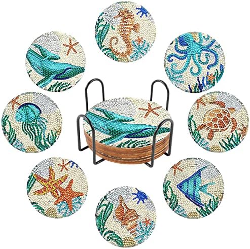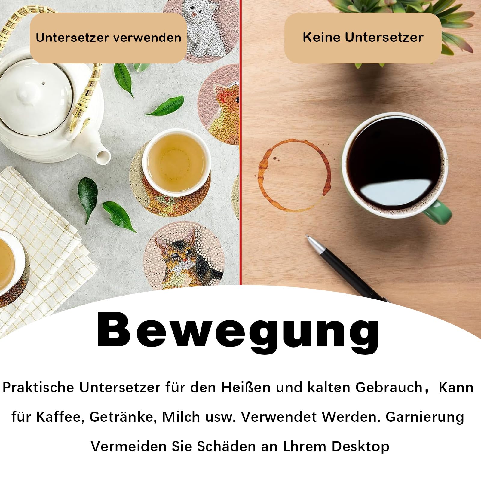 Kreative Köpfe, dieses feelive Diamond Painting Set ist genau das Richtige für entspannte Stunden! Enthalten sind 8 verschiedene Untersetzer-Motive, die du mit funkelnden Diamanten verzieren kannst. Jedes Design ist einzigartig und wird deinem Zuhause eine persönliche Note verleihen. Im Set findest du alles, was du brauchst: Die Unterlagen mit klaren Zahlen, bunte Diamanten, einen Stift, Kleber und sogar Korkböden für die Rückseite. Einfach die Diamanten entsprechend der Zahlen auf die klebrige Oberfläche setzen - das ist so entspannend und macht süchtig! Perfekt für Erwachsene und Anfänger, aber auch für Kinder ab einem bestimmten Alter geeignet. Die fertigen Untersetzer sind nicht nur hübsch anzusehen, sondern auch praktisch: Sie schützen deine Tische vor heißen oder kalten Getränken. Super als Geschenk für Geburtstage, Weihnachten oder einfach als Mitbringsel. Ob alleine oder mit Freunden - Diamond Painting ist der perfekte Ausgleich zum stressigen Alltag. Einfach auspacken und loslegen - deine persönlichen Kunstwerke warten darauf, erschaffen zu werden!