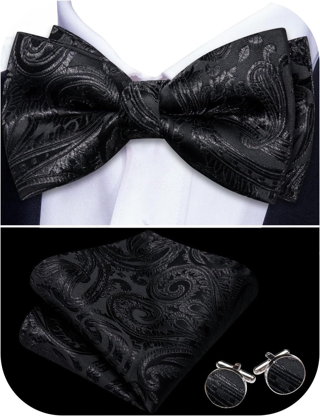 Vervollständige deinen eleganten Look mit diesem edlen 4-teiligen Fliegen-Set! Enthält eine vorgebundene Fliege, passendes Einstecktuch, Manschettenknöpfe und Anstecknadel - alles im harmonischen Paisley-Design. Aus hochwertiger Seidenmischfaser mit glänzendem Finish und angenehmem Tragekomfort. Die Fliege hat verstellbares Gummiband für Halsumfang 26,5-55,5cm - passt also für Männer und Jugendliche! Perfekt für Hochzeiten, Abschlussbälle, Galas oder Business-Events. In über 30 Farben erhältlich - von klassischem Schwarz bis zu modernen Trendfarben. Einfach zum Hemd oder Anzug kombinieren und du bist perfekt gestylt! Besonders praktisch: Die Fliege ist schon vorgebunden - kein mühsames Knoten nötig! Einfach anklicken und los geht's. Das Set macht sich super als Geschenk für Trauzeugen, Absolventen oder stylische Herren die Wert auf Details legen. Hochwertige Verarbeitung mit 1400 Nähten für optimale Haltbarkeit!