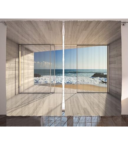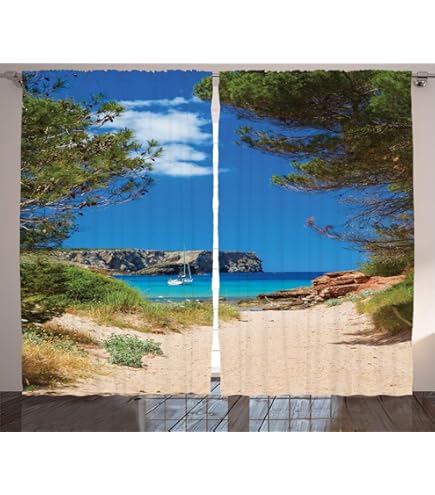 Hol dir Urlaubsfeeling nach Hause! Dieser wunderschöne Vorhang mit Palmen und Meer-Motiv in Weiß-Grün bringt sofort Sommerstimmung in dein Wohnzimmer. Mit 280x245cm Größe passt er perfekt vor die meisten Fenster.