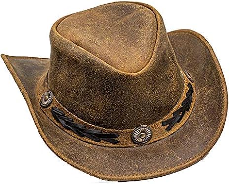 Howdy Partner! Dieser Pamposh Cowboyhut aus echtem Leder ist der absolute Blickfang für jeden Western-Fan! Handgefertigt und superleicht - sitzt perfekt ohne zu drücken. Die breite Krempe schützt super vor Sonne, und der verstellbare Kinnriemen hält alles sicher an Ort und Stelle. Besonders cool: In der Krempe ist ein Stahldraht, damit du sie nach deinem Geschmack formen kannst! Aus hochwertigem Buschleder, wasserabweisend und mit atmungsaktivem Innenfutter. Ob fürs Festival, den Urlaub oder einfach nur für den Style - dieser Hut macht jede Outfit zum Statement! In verschiedenen Größen erhältlich, also einfach Kopfumfang messen und die passende Größe wählen. Pflege ist einfach: Mit nem feuchten Tuch abwischen und an der Luft tronen lassen. Yeehaw!