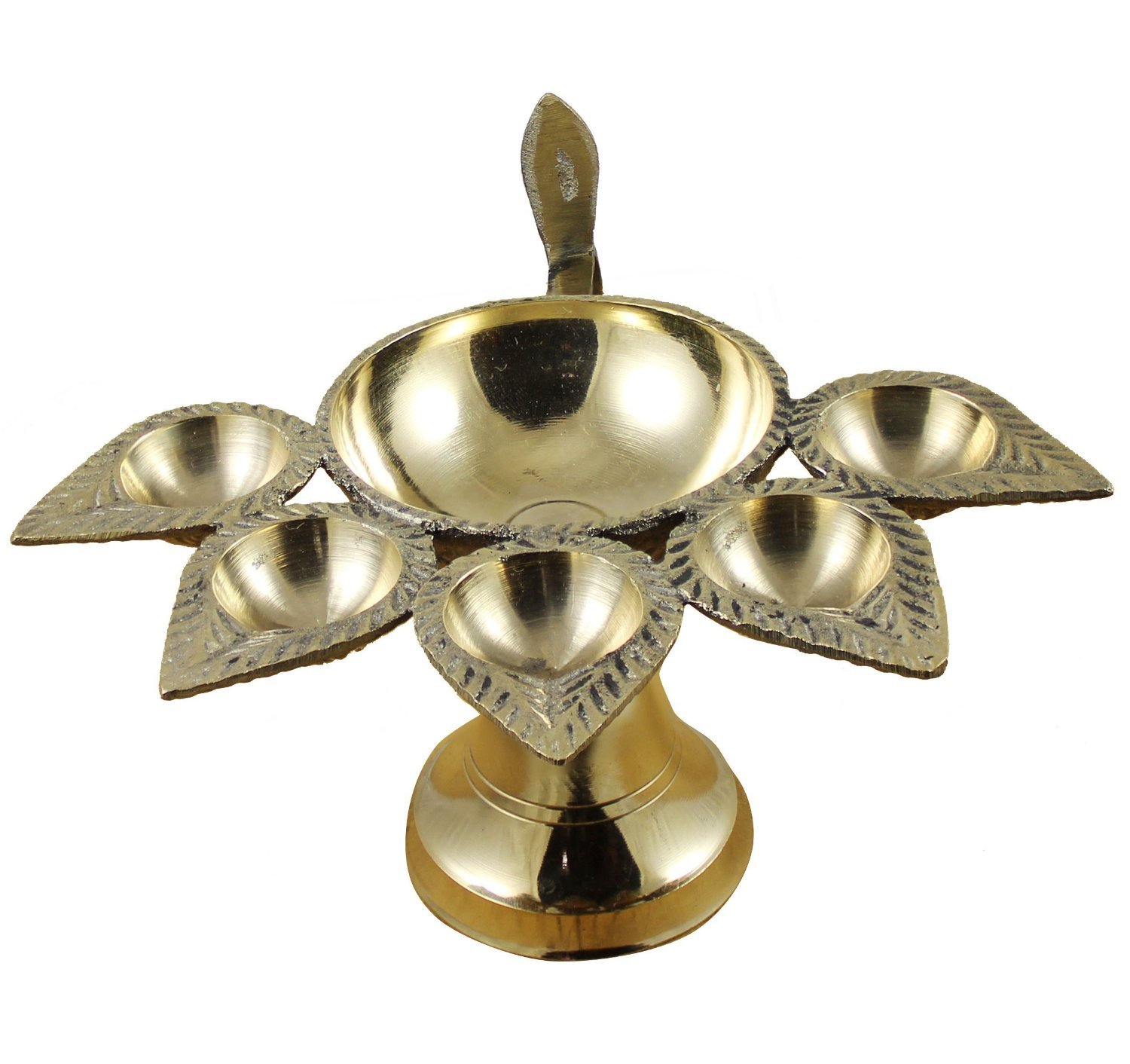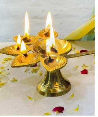 • Indische Messing Diya Öllampe - Panch Aarti Design Für Hinduistische Puja Rituale