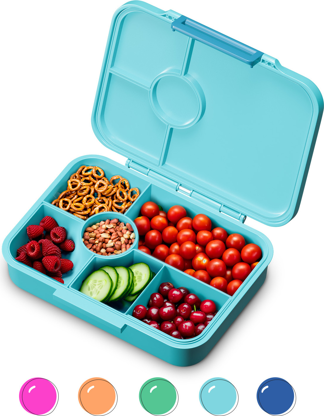 Besonders clever: Die silikonversiegelten Fächer sind komplett auslaufsicher. Egal ob in der Schultasche oder im Rucksack - nichts läuft aus! Und mikrowellengeeignet ist die Dose auch noch.