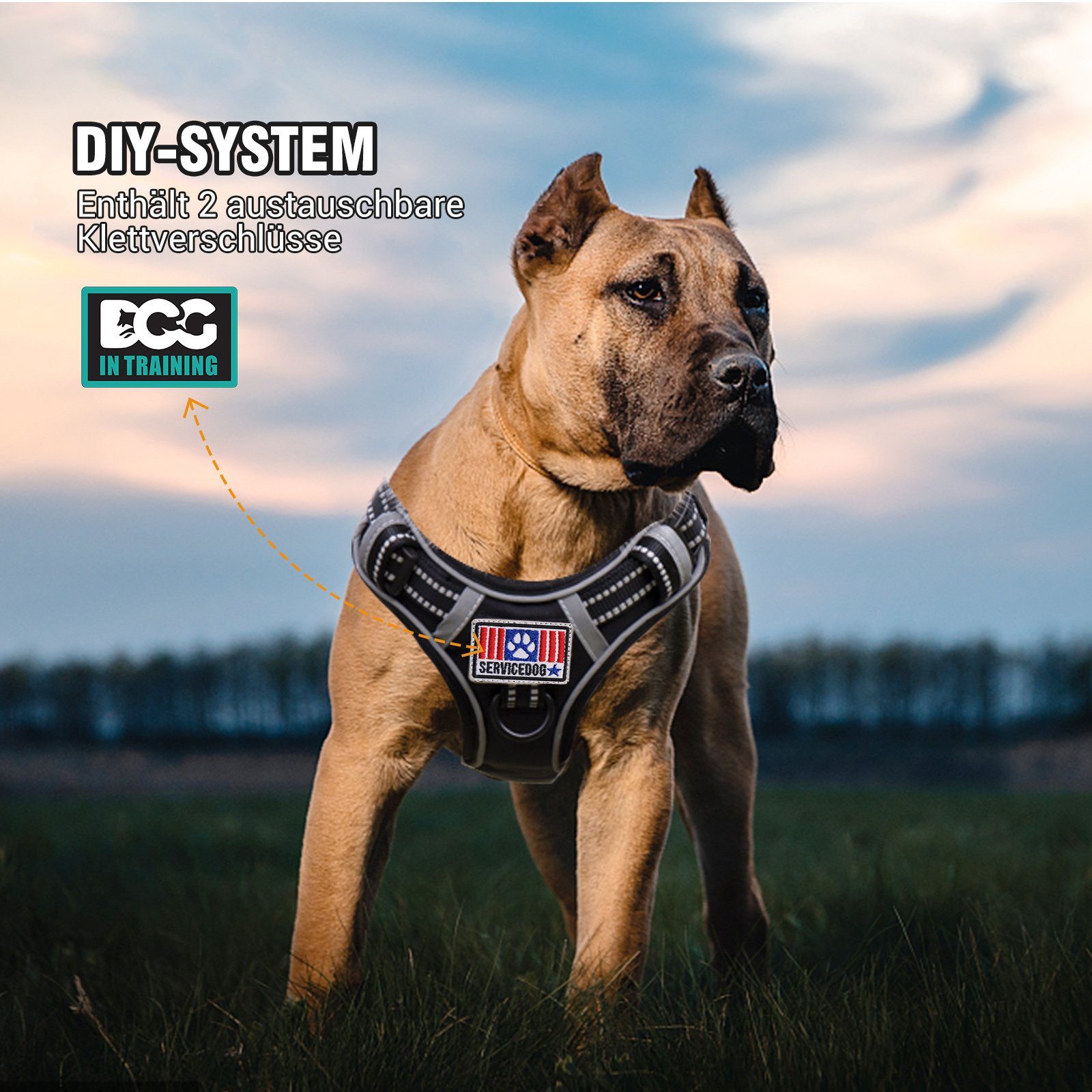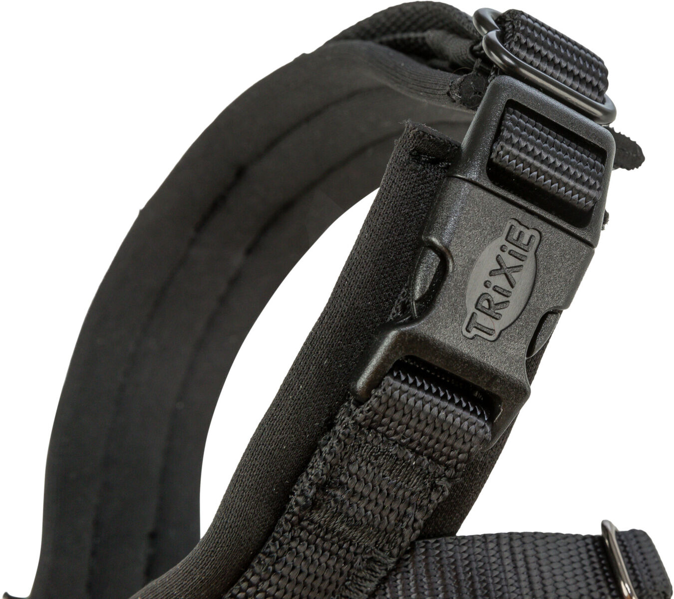 Hey, für alle Hunde die bei Angst oder Panik versuchen aus dem Geschirr zu schlüpfen! Dieser Adapter von TRIXIE verwandelt fast jedes normale Geschirr in ein sicheres Panikgeschirr.\n\nGröße L-XL passt für Brustumfänge von 59-92 cm. Für 25 mm breite Gurte geeignet. In schwarz - dezent und praktisch.\n\nDurch die Schlaufen im Rücken- und Bauchbereich sitzt das Geschirr viel sicherer. Dein Hund kann nicht mehr so einfach rausrutschen, auch wenn er panisch wird.\n\nDer Adapter ist mit Neopren gepolstert - super bequem für den Hund. Kann er also auch länger tragen ohne dass es scheuert.\n\nStufenlos verstellbar - passt sich optimal an. Perfekt für den Dauergebrauch oder für besondere Anlässe wie Silvester, Gewitter oder andere stressige Situationen.\n\nTRIXIE Qualität - die wissen was sie tun bei Haustierzubehör. Einfach anbringen und dein Hund ist sicherer unterwegs. Besonders wichtig für ängstliche Hunde oder solche die gerne mal ausbüxen würden!
