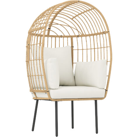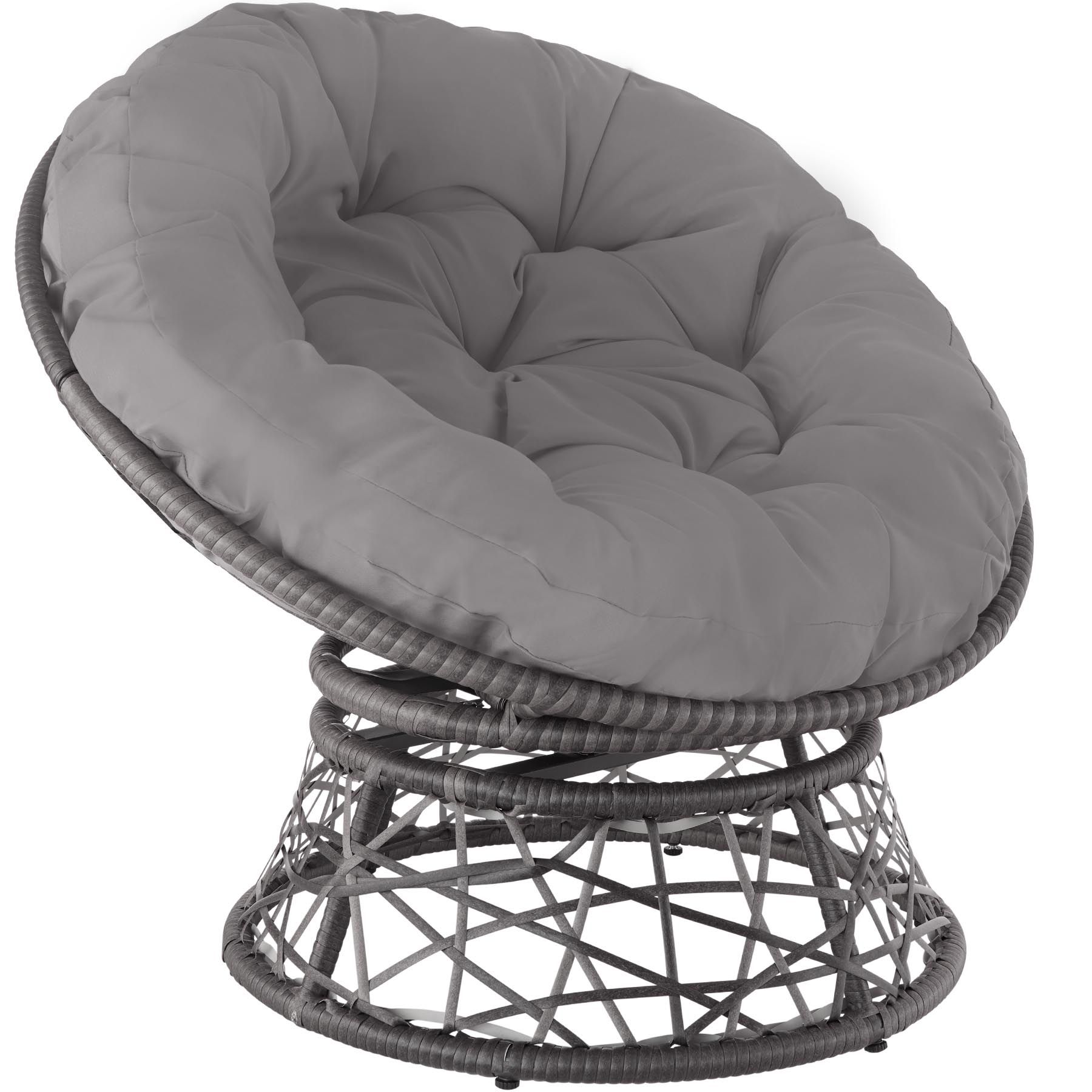 Alter, dieser Sessel ist reine Entspannung pur! Stell dir vor: du drehst dich gemütlich im Kreis, das kuschelige Polster unter dir, und vergisst einfach alles um dich rum. \\n\\nOb im Garten, auf der Terrasse oder im Wohnzimmer - der Outsunny Papasansessel macht überall eine gute Figur. Das Kunstrattan ist total wetterfest, also kein Problem wenn mal ein Schauer kommt. \\n\\nDer Stahlrahmen ist stabil wie eine Bank, und die höhenverstellbaren Füsse sorgen dafür, dass der Sessel auch auf unebenem Boden sicher steht. \\n\\nDas Polster ist abnehmbar - super praktisch wenn's mal dreckig wird. Einfach abziehen, waschen, und wieder drauf. \\n\\nMontage ist in wenigen Minuten erledigt. Danach einfach reinsetzen, abdrehen und die Seele baumeln lassen! Perfekt für'n Abend mit nem kühlen Drink in der Hand. \\n\\nMaterial: Kunstrattan + Stahl | Besonderheit: 360° drehbar | Polster: Abnehmbar | Mass: 87x97x90cm | Wetterfest: Ja