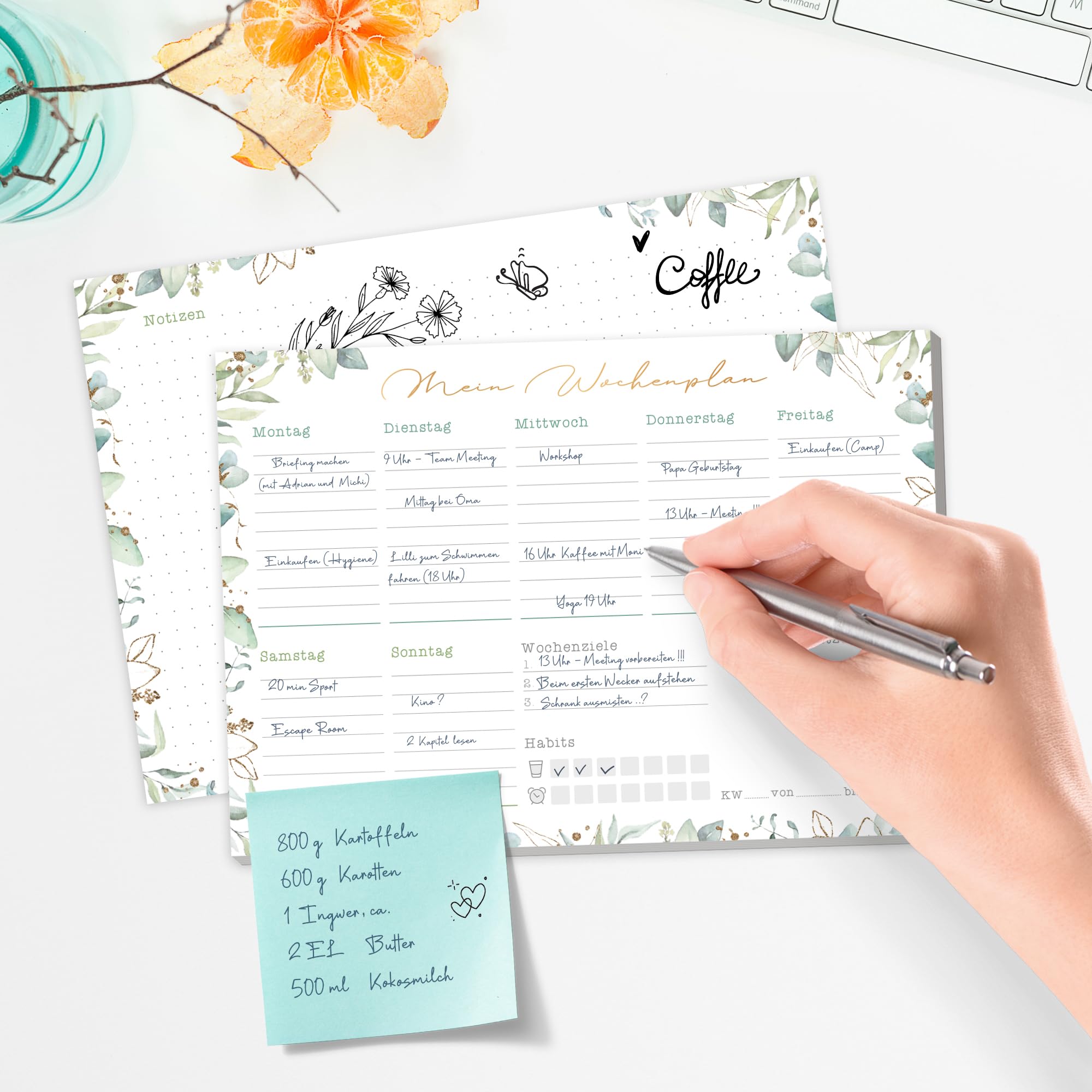 Organisiere dein Leben, wann du willst! Dieser undatierte Wochenplaner im handlichen A5-Format startet genau dann, wenn du bereit bist. Mit 53 Wochen auf Doppelseiten bietet er Platz für Termine, To-dos und persönliche Notizen. Besondere Features: Dankbarkeitsfelder, Habit-Tracker und Mood-Tracker helfen dir, achtsamer durch den Alltag zu gehen. Aus hochwertigem FSC-zertifiziertem Papier, klimafreundlich produziert. Das stabile Cover mit Blattgold-Prägung und Fadenheftung hält auch bei täglicher Nutzung. Dein Begleiter für mehr Balance und Struktur!