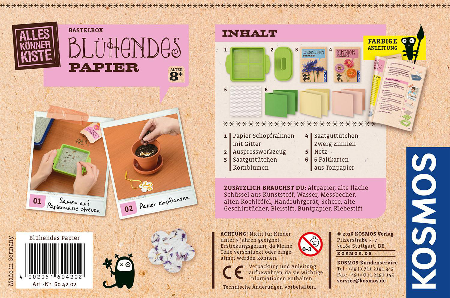 Möchtest du mit deinen Kindern kreativ werden und eigenes Papier herstellen? Das KOSMOS Papierschöpfen Set macht es möglich! Mit der großen Schöpfwanne, dem Schöpfrahmen und dem vielfältigen Zubehör wird Basteln zum echten Erlebnis. \\n\\nEinfach altes Küchen- oder Zeitungspapier verwenden und in bunte, individuelle Papiere verwandeln. Die große Motivschablone ermöglicht herz-, blumen- oder sternenförmige Karten - der Kreativität sind keine Grenzen gesetzt! \\n\\nIm Set enthalten: \\n• Große Schöpfwanne\\n• Schöpfrahmen\\n• Motivschablonen\\n• Bunt illustrierte Anleitung\\n• Viele Bastelideen\\n\\nMaße: 37x29x8cm - perfekt für den Basteltisch. Die Anleitung erklärt Schritt für Schritt das Schöpfen und bietet viele Inspirationen für tolle Projekte. Ein wunderbares Geschenk für kreative Kinder ab 3 Jahren (unter Aufsicht) - pädagogisch wertvoll und macht riesigen Spaß!