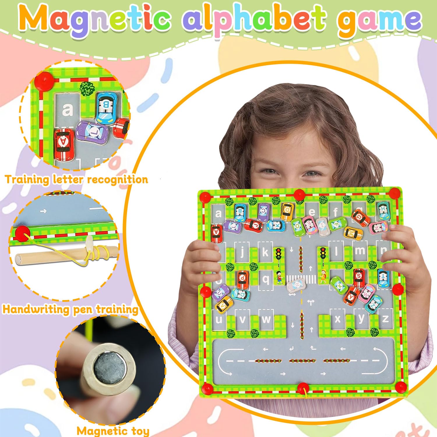 • Magnetisches Alphabet Puzzle Auto & Parkplatz - Montessori Lernspiel Ab 3 Jahren