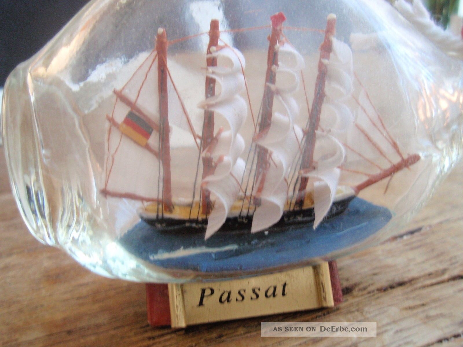 Maritime Romantik für dein Zuhause! Dieses wunderschöne Flaschenschiff der Passat fängt die Faszination der Seefahrt in perfekter Miniatur ein. Das detailgetreue Modellschiff ist kunstvoll in einer Glasflasche mit Holzstander platziert. Mit Maßen von ca. 16cm Breite, 8cm Höhe und 6cm Tiefe ist es ein echter Hingucker auf jedem Regal, Sideboard oder Schreibtisch. Die liebevolle Handarbeit und die authentische Nachbildung des berühmten Segelschiffes begeistern nicht nur Seefahrts-Fans. Das klassische Design passt perfekt in maritim eingerichtete Räume und verbreitet sofort Urlaubsstimmung. Ein ideales Geschenk für Kapitäne, Hobby-Segler oder alle, die das Meer lieben. Artikelnummer 4223 - ein zeitloses Sammlerstück das Geschichten erzählt. Hol dir ein Stück maritime Tradition nach Hause und lass dich von der Magie der großen weiten Welt verzaubern. Dieses Buddelschiff ist mehr als nur Deko - es ist ein Symbol für Abenteuer, Freiheit und die Weite der Ozeane!