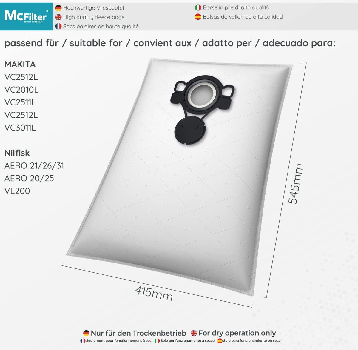 Dein Makita Staubsauger braucht neue Beutel? Hier bist du genau richtig! Dieses Set mit 15 Beuteln passt perfekt für Makita Modelle VC2512L, VC3012L, VC2010L, VC2000L, VC2012L, VC2511L, VC3011L, VC3511L. Aus hochwertigem Vliesmaterial mit 2 Lagen Vlies und 1 Lage Meltblown-Fasern - filtert 99% von Staub und Allergenen raus! Der spezielle Verschluss verhindert lästiges Staubaustreten beim Wechseln. Super einfach zu installieren, hält lange und ist dabei super günstig. Ob für zuhause oder die Werkstatt - mit diesen Beuteln bleibt dein Staubsauger top in Schuss. Einfach wechseln und weiterstaubsaugen!