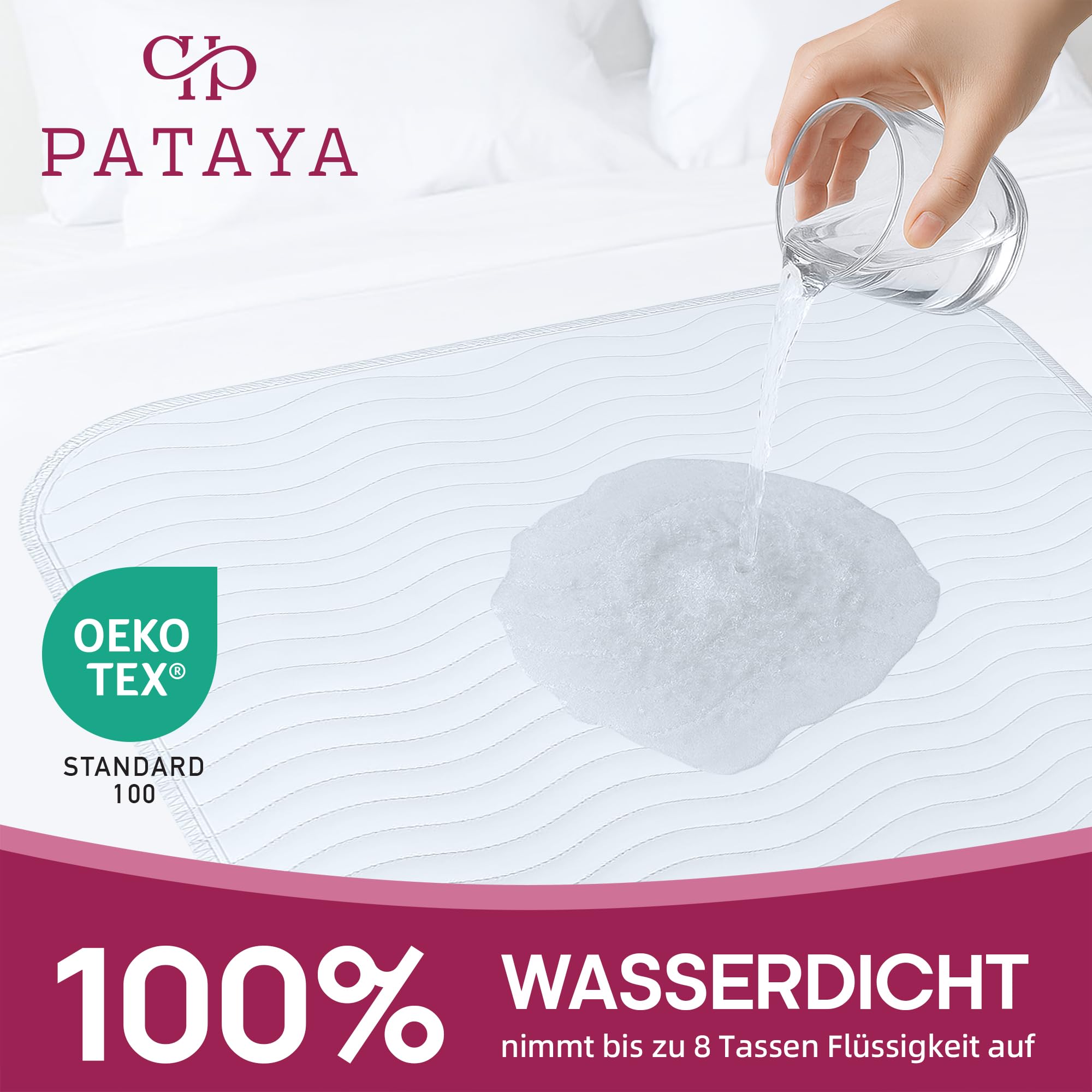 Schlaf ruhig - deine Matratze ist sicher! Die Pataya Inkontinenzunterlage in 75x90cm bietet optimalen Schutz gegen Nässe und Flecken. Das 4-Schicht-Vlies-Material ist super saugstark, aber trotzdem atmungsaktiv für ein angenehmes Schlafklima. OEKO-TEX zertifiziert und frei von Schadstoffen, ist sie auch für Babys und Kinder bestens geeignet. Aus umweltfreundlichen Materialien wie Polyester und Polyurethan gefertigt, schützt sie deine Matratze zuverlässig vor allen Flüssigkeiten. Praktisch: Sie ist bis 90°C waschbar und sogar trocknergeeignet! Perfekt für Kinder, die nachts noch einnässen, oder für Erwachsene mit Inkontinenzproblemen. Die Unterlage gibt's in verschiedenen Größen, oft im 2er-Set. So hast du immer eine Reserve, während die andere in der Wäsche ist. Einfach auf die Matratze legen und sorgenfrei schlafen!