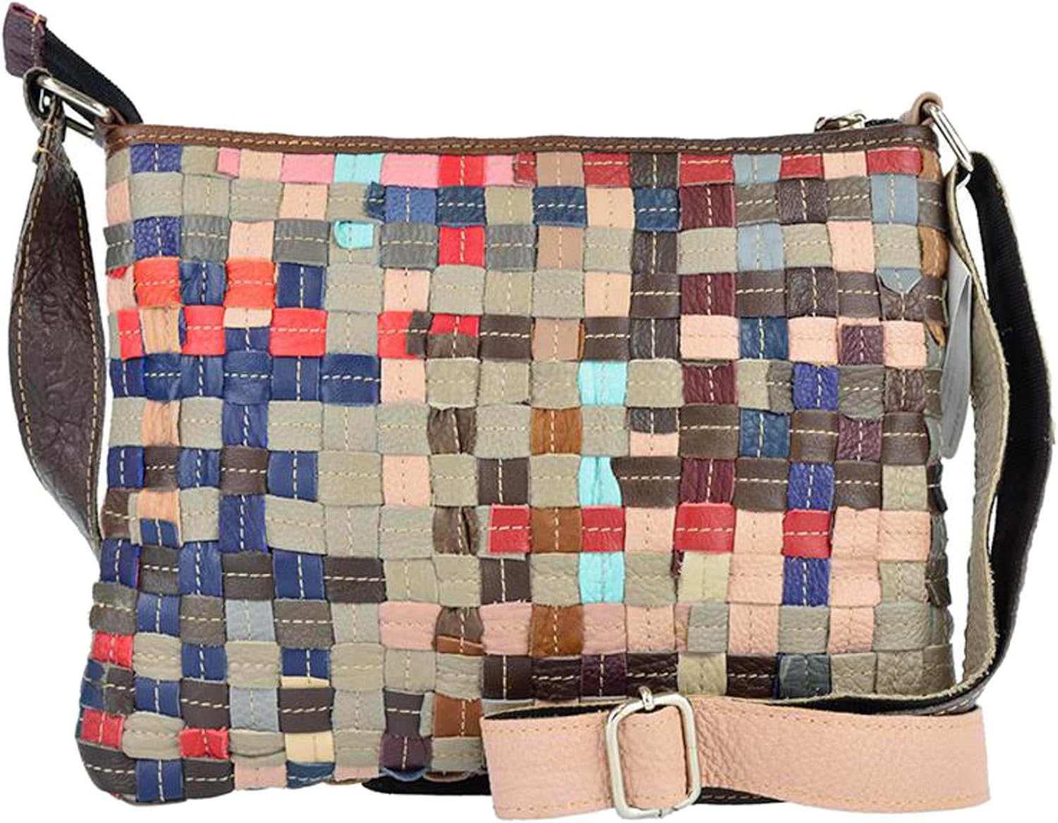 Stylische Umhängetasche aus echtem italienischem Leder! Das bunte Patchwork-Design macht diese Tasche zum absoluten Hingucker. Perfekt für Alltag, Arbeit oder Reisen. 💼\n\n• Maße: 26,5 x 18,5 x 8 cm\n• Aus gewebtem italienischem Leder\n• Abnehmbarer, verstellbarer Gurt\n• Vollständig gefütterter Innenraum\n• Mit Reißverschlussfach und Handytasche\n\nPraktische Features:\n• Crossbody oder über der Schulter tragbar\n• Leicht aber geräumig\n• Hochwertige Verarbeitung\n• Einzigartiges Farbenspiel\n\nOb im Büro oder in der Stadt - diese Tasche ist dein perfekter Begleiter!