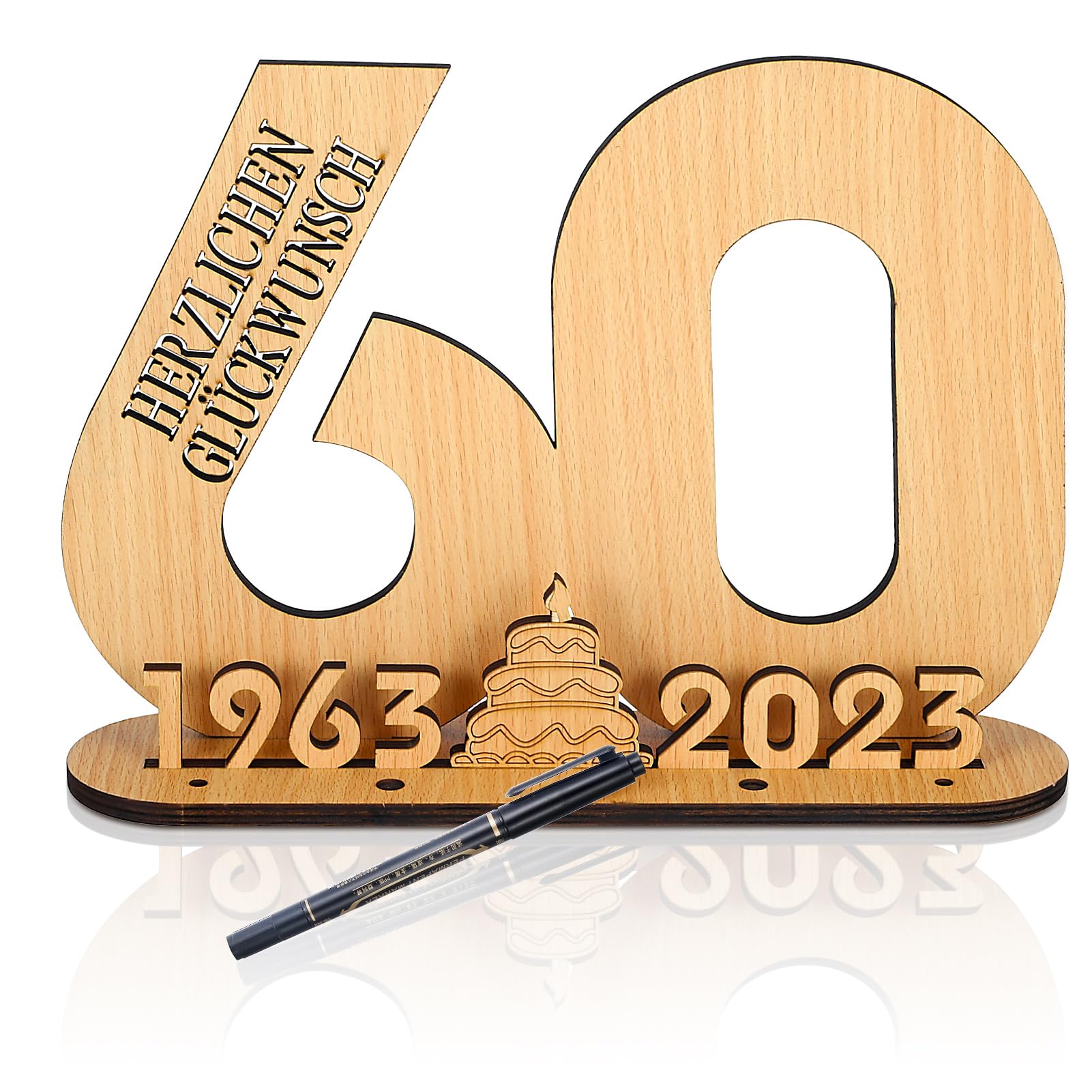 Oh wie süß! Dieses Holz-Gästebuch von Patelai ist perfekt für besondere Anlässe. Aus natürlichem Holz gefertigt, mit der Zahl 60 und den Jahreszahlen 1965-2025 - ideal für Jubiläen, Hochzeiten oder Geburtstage. Im Lieferumfang ist sogar ein Stift dabei, also musst du nicht extra einen besorgen. Deine Gäste können ihre Wünsche und Grüße direkt ins Holz schreiben - das wird eine tolle Erinnerung! Das Schild steht stabil auf dem Tisch und ist ein echter Hingucker auf jeder Feier. Stell dir vor, wie schön das aussieht auf deinem Jubiläumsfest... Einfach aufstellen und die Gäste können sofort losschreiben. Die natürliche Holzoptik passt zu jedem Dekorationsstil. Perfekt um die unvergesslichen Momente festzuhalten. Deine Gäste werden begeistert sein und du hast später eine wunderschöne Erinnerung an deinen besonderen Tag. Hol es dir und mach deine Feier zu etwas ganz Besonderem! Einfach aufbauen und die Magie wirken lassen.