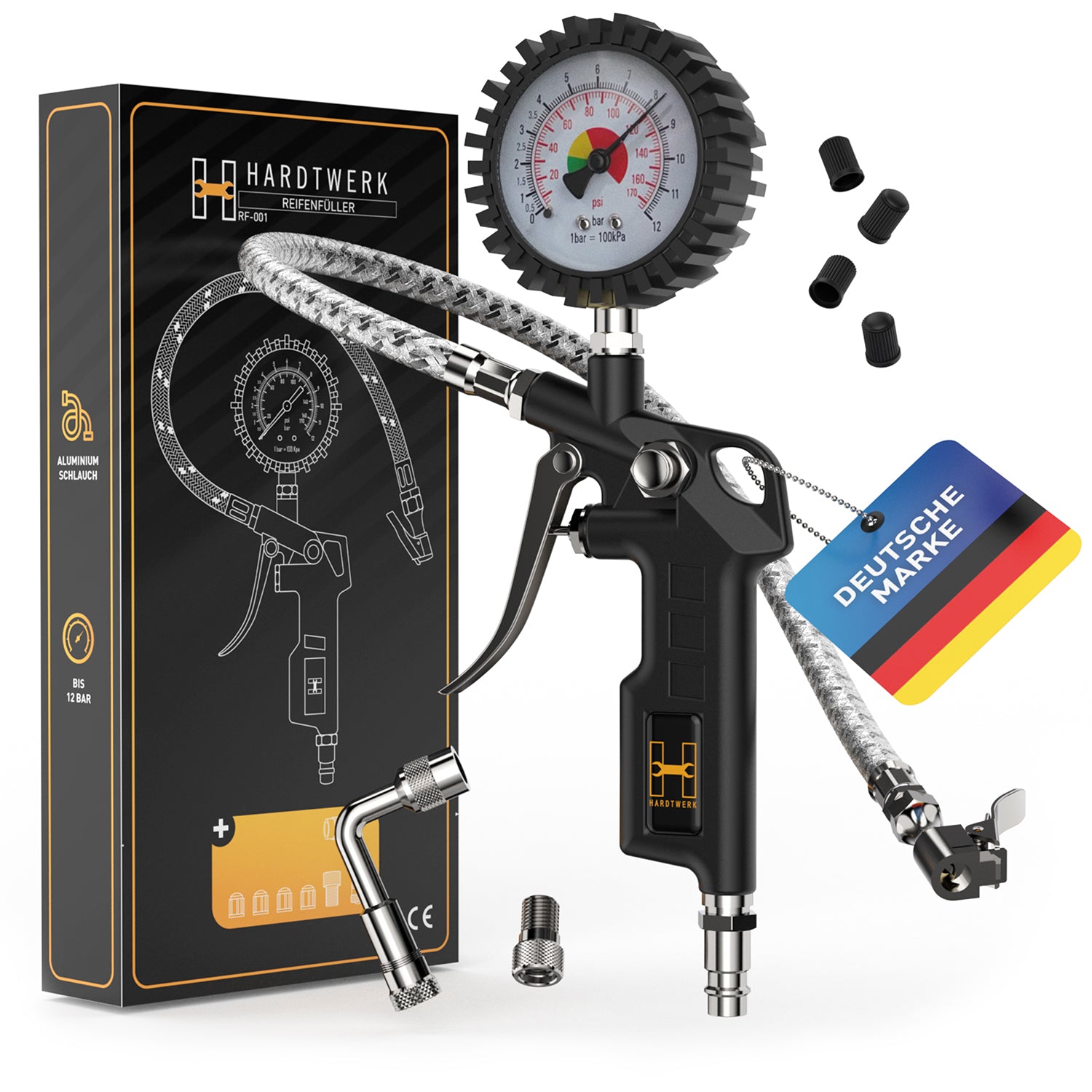 Endlich Luft nachfüllen ohne Ärger! Dieser Reifendruckprüfer mit 150cm Schlauch und cleverem Patentstecker hält bombenfest auf dem Ventil - nichts läuft aus!