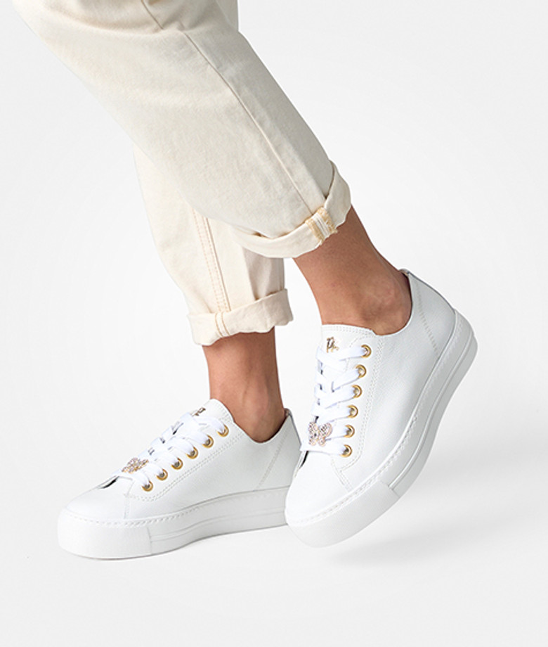 Oh, diese Paul Green Sneaker sind ja der absolute Hingucker! In strahlendem Weiß gehalten, machen sie jedes Outfit sofort stylisch. Hergestellt aus weichem Glattleder, das sich super angenehm anfühlt. Das besondere Detail: Ein niedlicher Schmetterling mit Glitzersteinchen an den Schnürsenkeln - wie süß ist das denn? Aber die Sneaker können nicht nur gut aussehen, sie sind auch mega bequem. Die weiche Fersenkappe drückt nicht, die flexible Laufsohle gibt bei jedem Schritt nach und das Fußbett polstert deine Füße perfekt. Sogar nach Stunden laufen tun dir hier nicht die Füße weh! Und das Beste: Paul Green legt Wert auf Nachhaltigkeit - die Sneaker sind mit dem PFI Eco-Label zertifiziert und das Leder stammt von zertifizierten Betrieben. In Europa hergestellt, in Größe 45 erhältlich. Perfekt für alle, die Style und Komfort lieben!