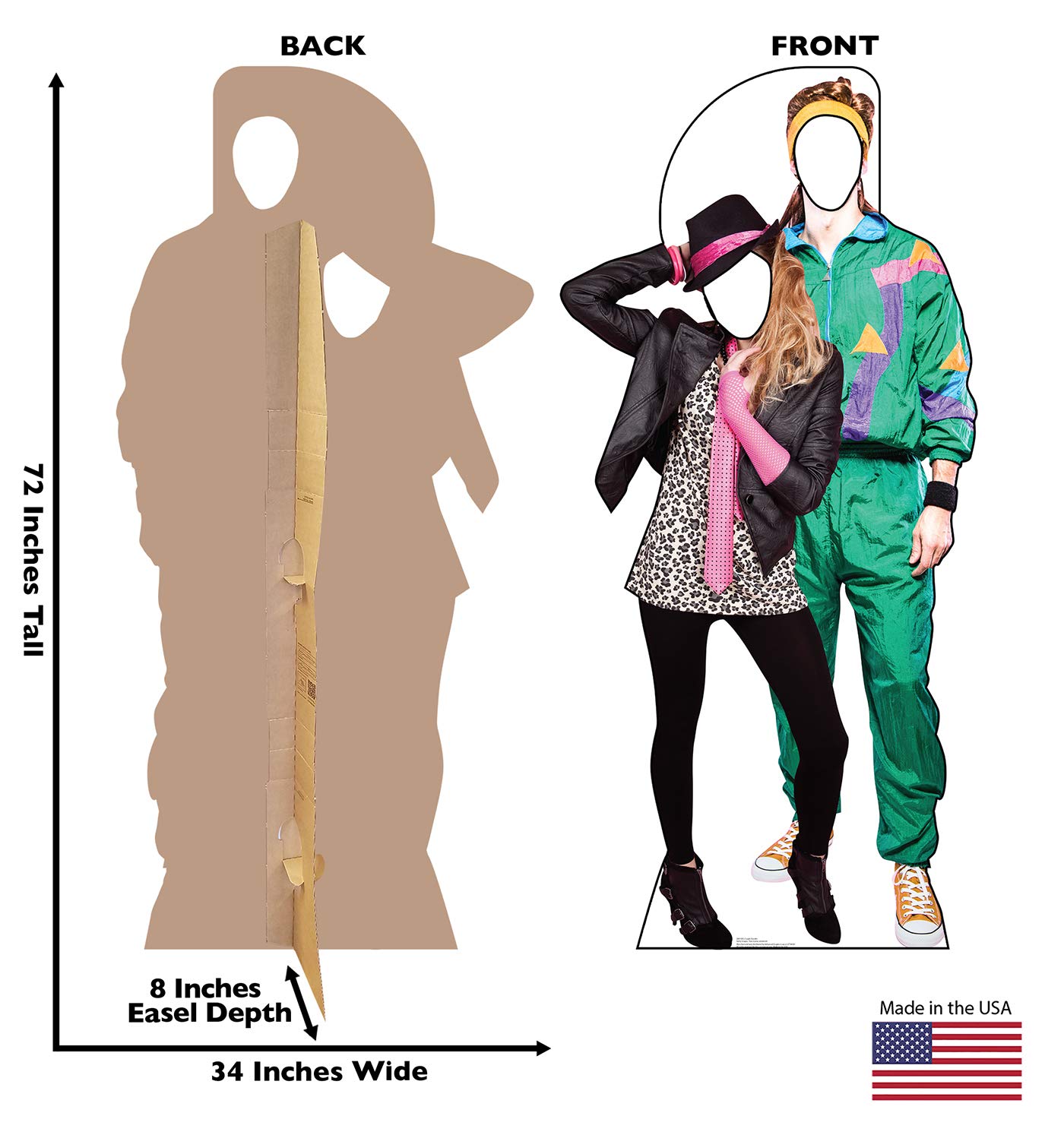 Bring 80er Jahre Flair in deine Party mit diesem lebensgroßen Pappaufsteller-Pärchen von Cardboard People! Mit stolzen 183 cm Höhe sind die beiden ein echter Hingucker. Hergestellt aus hochwertigem, stabilem Karton in den USA - seit 1984 die Experten für Pappaufsteller. Die Montage ist kinderleicht: Einfach entlang der vorge-stanzten Linien aufklappen, die Staffelei ausklappen und schon steht das Pärchen. Perfekt für Partys, Events, Werbung oder als Foto-Requisite. Nach der Party einfach wieder flach zusammenlegen und platzsparend verstauen - wiederverwendbar für unzählige Anlässe. Schaff unvergessliche Momente und lustige Fotos für Social Media mit diesem coolen Retro-Pärchen. Ein echter Eyecatcher, der garantiert für Gesprächsstoff sorgt!
