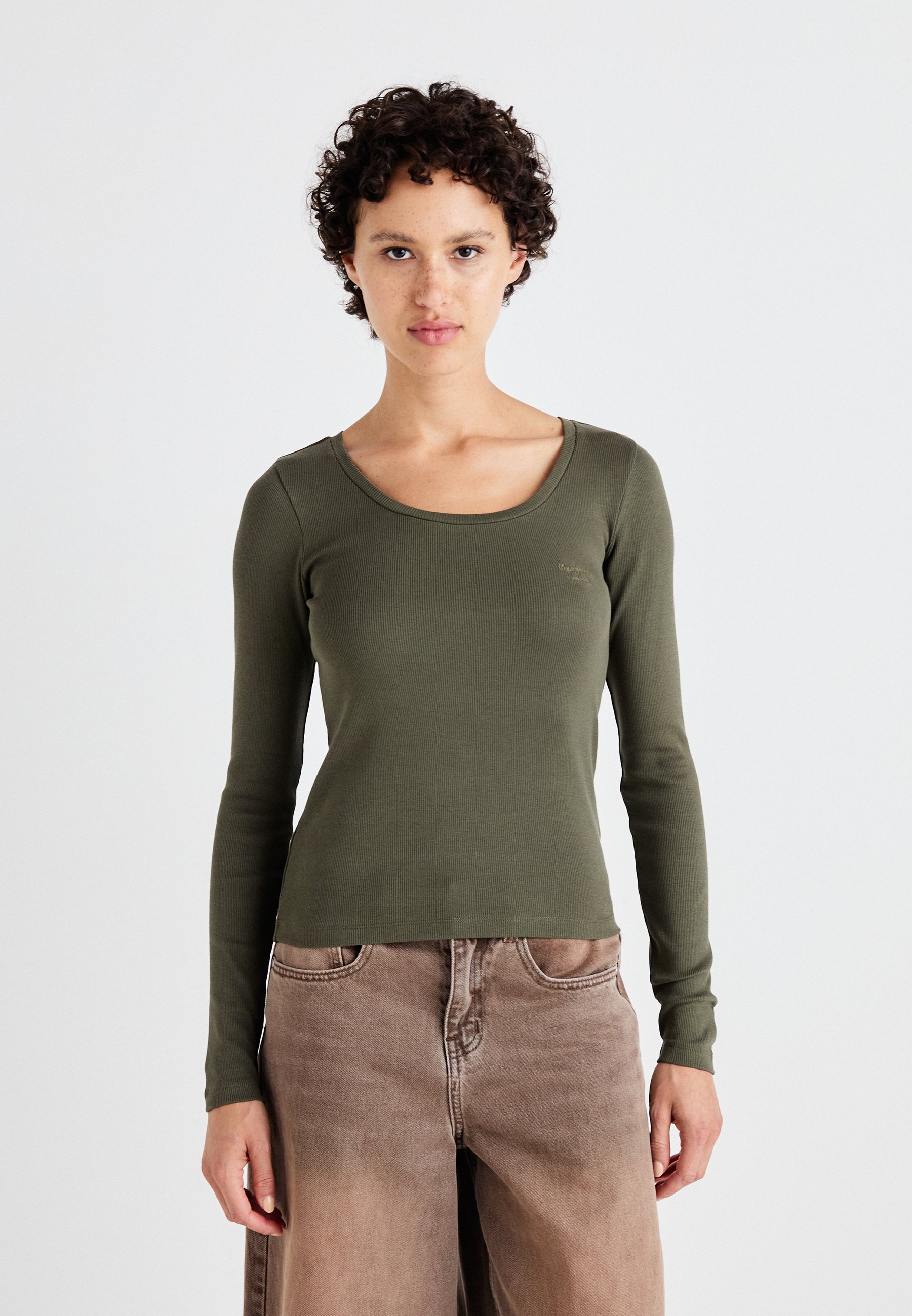 • Pepe Jeans Damen Finny T-Shirt Langarm | Baumwolle Mit Gesticktem Logo