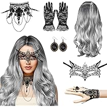 Perfect für Halloween! Diese graue Perücke mit 70cm langen, lockigen Haaren macht dich zur echten Gothic-Prinzessin. Das synthetische Haar fühlt sich weich und natürlich an - niemand merkt, dass es eine Perücke ist! Mit internem Gummizug, der sich den meisten Kopfumfängen anpasst. Und das Beste: Du bekommst ein komplettes Set! Neben der Perücke sind dabei: Spitzen-Handschuhe, eine coole Augenmaske, eine Halskette, ein Armband und Ohrringe im Gothic-Stil. Alles sterilisiert bei hohen Temperaturen, also absolut hygienisch unbedenklich. Perfekt für Halloween-Partys, Karneval, Cosplay oder Mottopartys. Die Haare lassen sich leicht kämmen und behalten ihre Form. Einfach nach dem Tragen aufhängen und trocknen lassen - schon ist sie wieder einsatzbereit. Bringt richtig Mystery und Gruselfaktor in dein Kostüm! Ob zur Gothic-Party oder einfach als stylischer Akzent im Alltag - mit diesem Set fällst du definitiv auf. Die graue Farbe mit Farbverlauf sieht einfach mega aus und passt zu jedem Hautton.