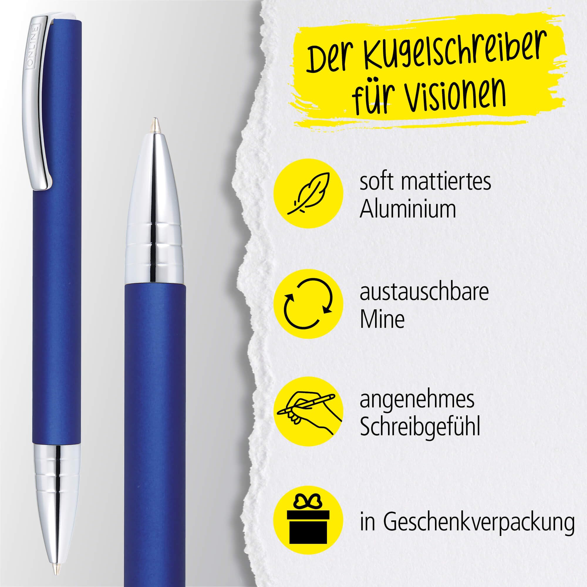 • Mine: Blaue Kunststoffmine - schreibt flüssig und klar