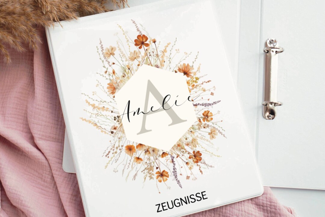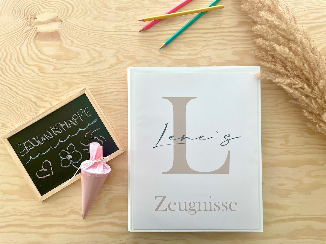Was für ein tolles Geschenk zur Einschulung! Diese personalisierte Zeugnismappe ist einfach perfekt für den ersten Schultag. Du kannst sie mit dem Namen deines Kindes individualisieren - so wird sie zu einem ganz besonderen Unikat. Aus hochwertigem Leinen gefertigt, sieht sie nicht nur edel aus, sondern ist auch super stabil. Die 4-Ringmechanik hält alle Zeugnisse, Urkunden und Bastelarbeiten sicher fest. Mit den Maßen 31x27x4,5cm ist sie genau im DIN A4 Format und bietet reichlich Platz für alle wichtigen Dokumente der Schulzeit. Der verstärkte Rücken schützt vor lästigen Eselsohren - alles bleibt schön ordentlich. Hergestellt in Deutschland in liebevoller Handarbeit, was die Qualität nochmal besonders macht. Egal ob für Jungen oder Mädchen - mit dem Cartoon Blumenkranz Design in Creme ist sie ein zeitloser Begleiter durch die ganze Schulzeit. Ein Geschenk, das wirklich von Herzen kommt und jahrelang Freude bereitet!