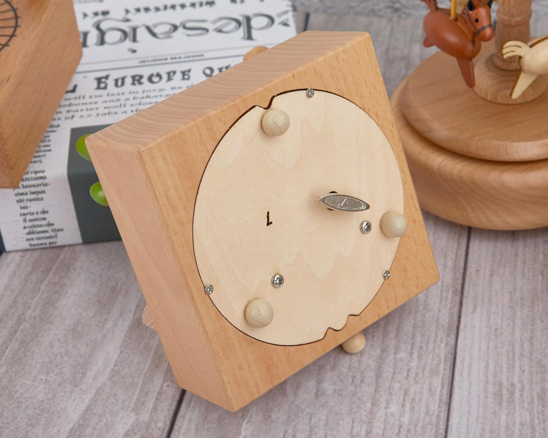 Batterieloser Betrieb: Einfach den Federknopf 2-3 Mal drehen und die magische Musik beginnt. Nicht überdrehen (max. 5-6 Mal), damit der Mechanismus lange hält.