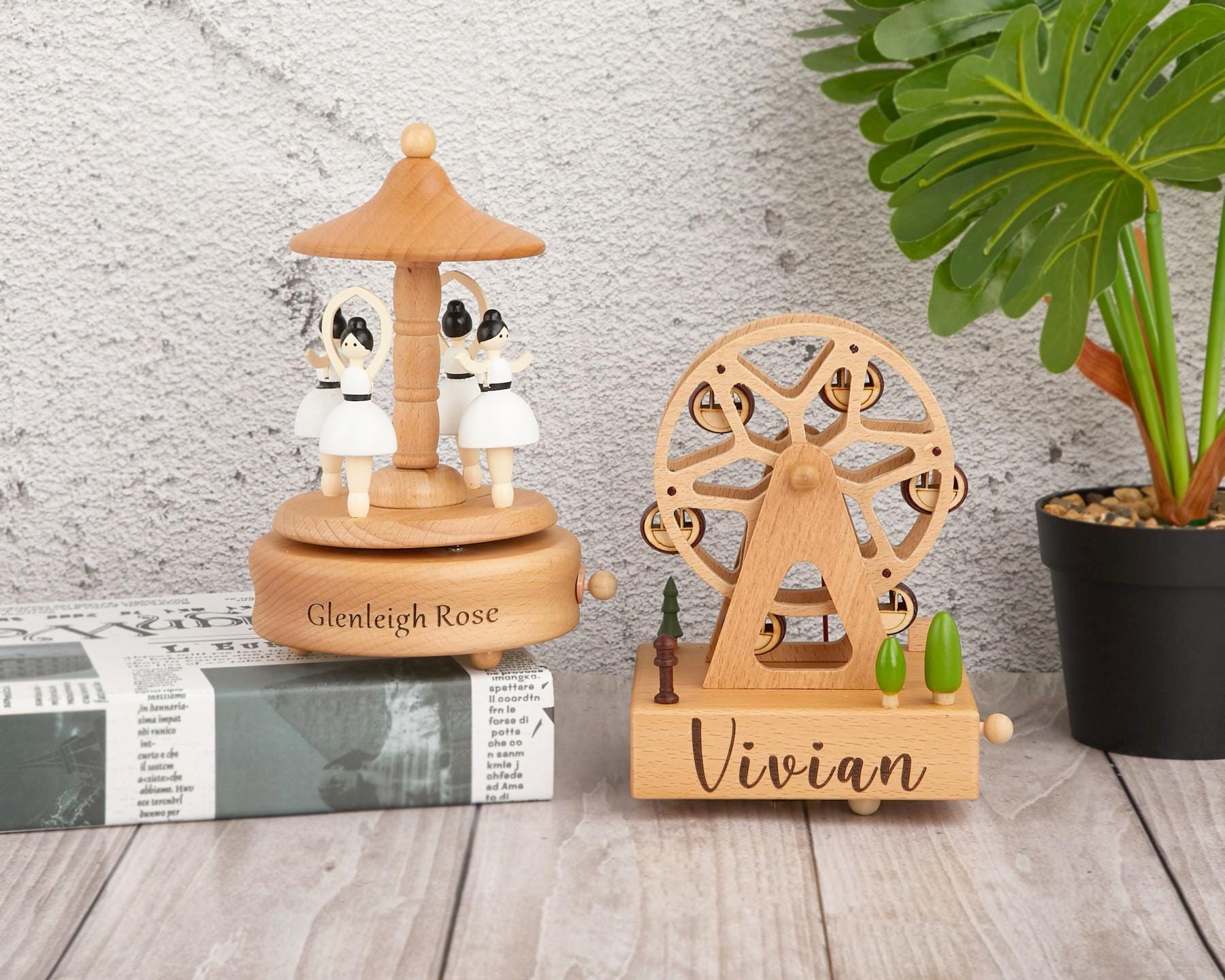 Ein ganz persönliches Musikwunder! Diese bezaubernde Holz-Musikbox kannst du mit Namen, Datum oder Glückwünschen personalisieren lassen. Einfach während der Bestellung den gewünschten Text angeben.