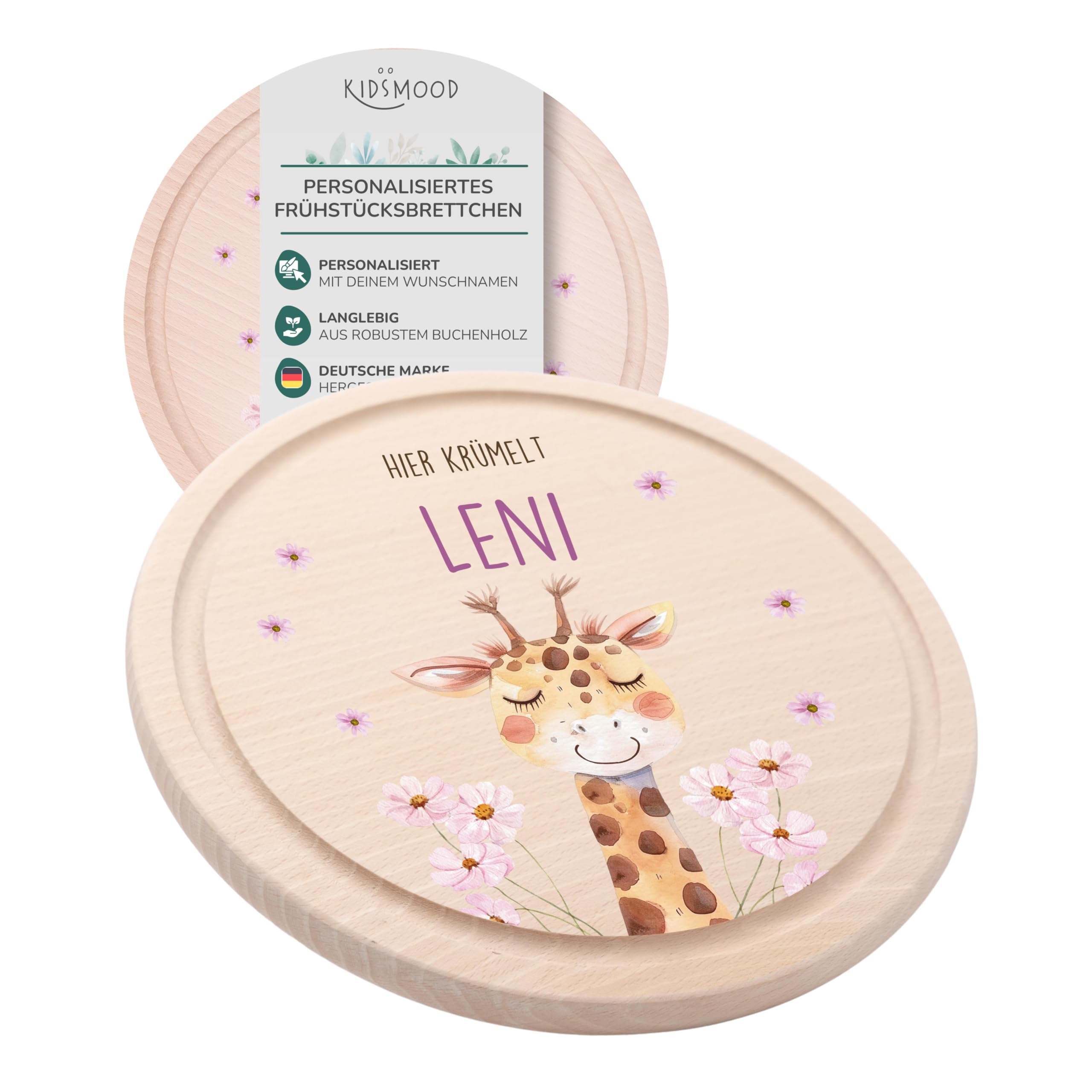 KIDSMOOD Personalisiertes Frühstücksbrettchen - Mit Namen Und Tiermotiv