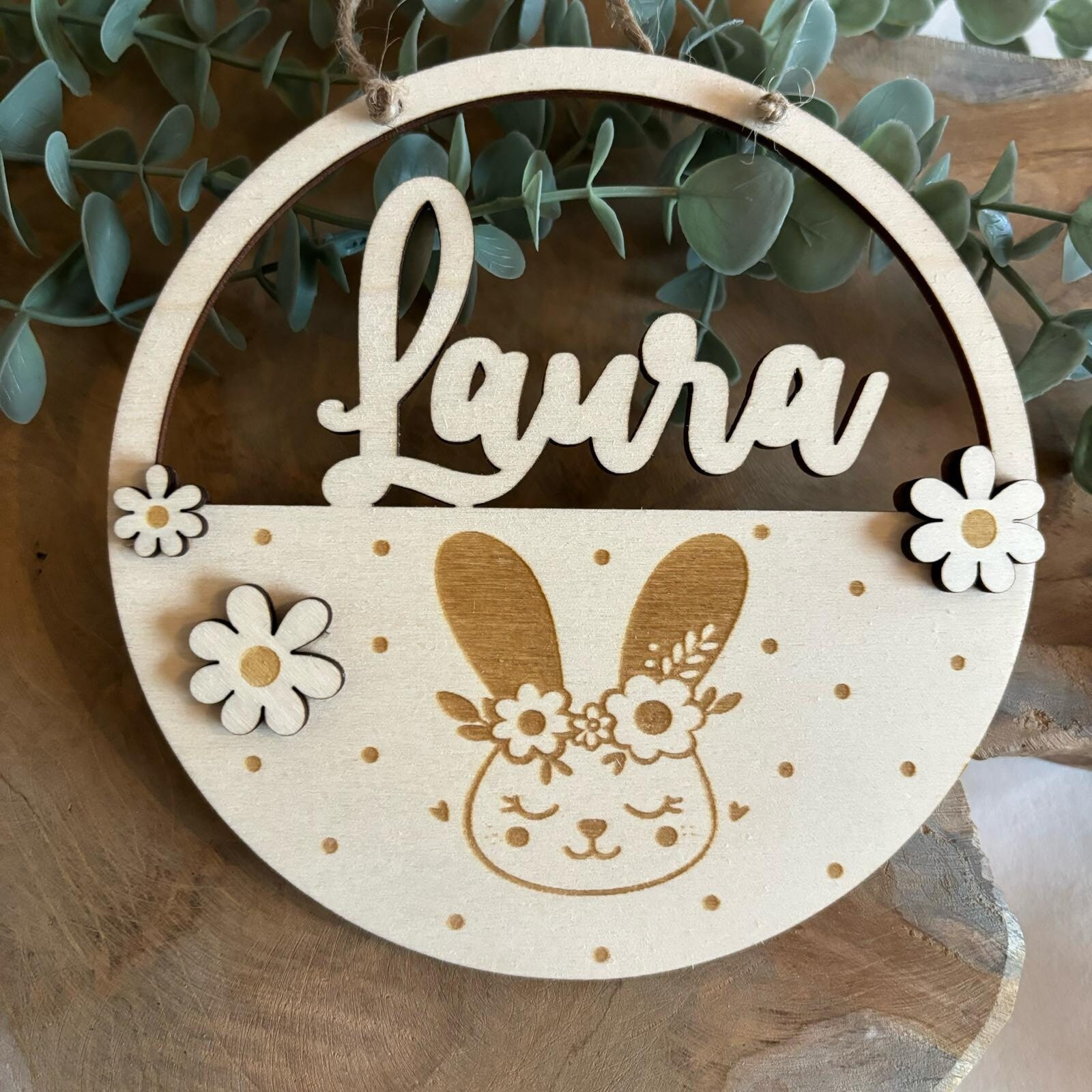 Personalisiertes Hasen Türschild Mit 3D Blumen - Kinderzimmer Deko Mit Namen