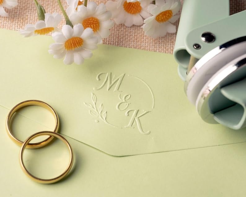 Verleihe deinen Hochzeits-Einladungen eine persönliche Note! Mit diesem personalisierbaren Prägewerkzeug kannst du deine Initialen, Namen oder ein Logo in Papier, Leder und andere Materialien prägen. Einfach festdrücken und schon entsteht ein eleganter, erhabener Abdruck. Hergestellt aus robustem Metall in verschiedenen Farben: Schwarz, Silber, Rosa, Roségold oder Grün. Perfekt für Hochzeits-Einladungen, Menükarten, Platz-karten oder Gästebücher. Aber auch für deine private Bibliothek, um Bücher zu kennzeichnen. Das macht jedes Stück zu einem Unikat und zeigt deinen persönlichen Stil. Ein wunderschönes Geschenk für Brautpaare oder Bücherliebhaber. Damit werden deine Hochzeitsunterlagen zu etwas ganz Besonderem, an das man sich immer gerne erinnert!