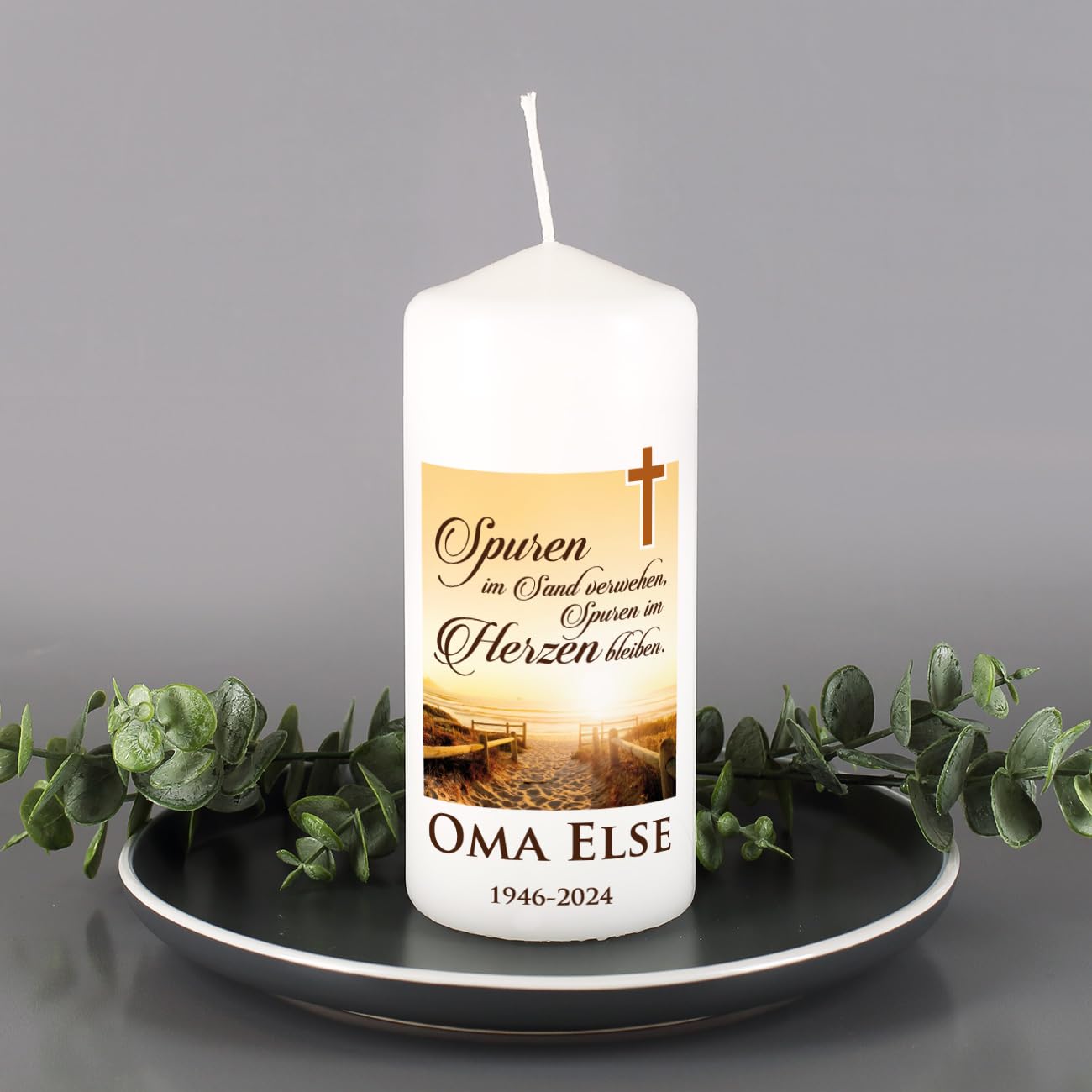 Ein berührendes Andenken für liebe Verstorbene. Dieses personalisierte Trauerlicht mit dem tröstlichen Spruch 'Du bist nicht mehr da, wo du warst, aber du bist überall, wo wir sind' spendet Trost und schenkt wertvolle Erinnerungsmomente. Die elegante schwarz-goldene Optik wirkt würdevoll und passt perfekt auf Gräber, Gedenkstätten oder als stilles Licht in den eigenen vier Wänden. Hochwertig verarbeitet aus langlebigem Material für eine würdevolle Präsentation. Das Windlicht ist für Standard-Teelichter geeignet, die gleichmäßig und lange brennen. Ideal für Beerdigungen, Allerseelen, Gedenktage oder einfach als Zeichen der Verbundenheit. Kann personalisiert werden für eine ganz individuelle Note. Ein einfühlsames Geschenk für Hinterbliebene, das zeigt, dass man an sie denkt. Schafft eine warme, tröstliche Atmosphäre in stillen Momenten des Gedenkens. Ein zeitloses Erinnerungsstück, das seine besondere Bedeutung behält.
